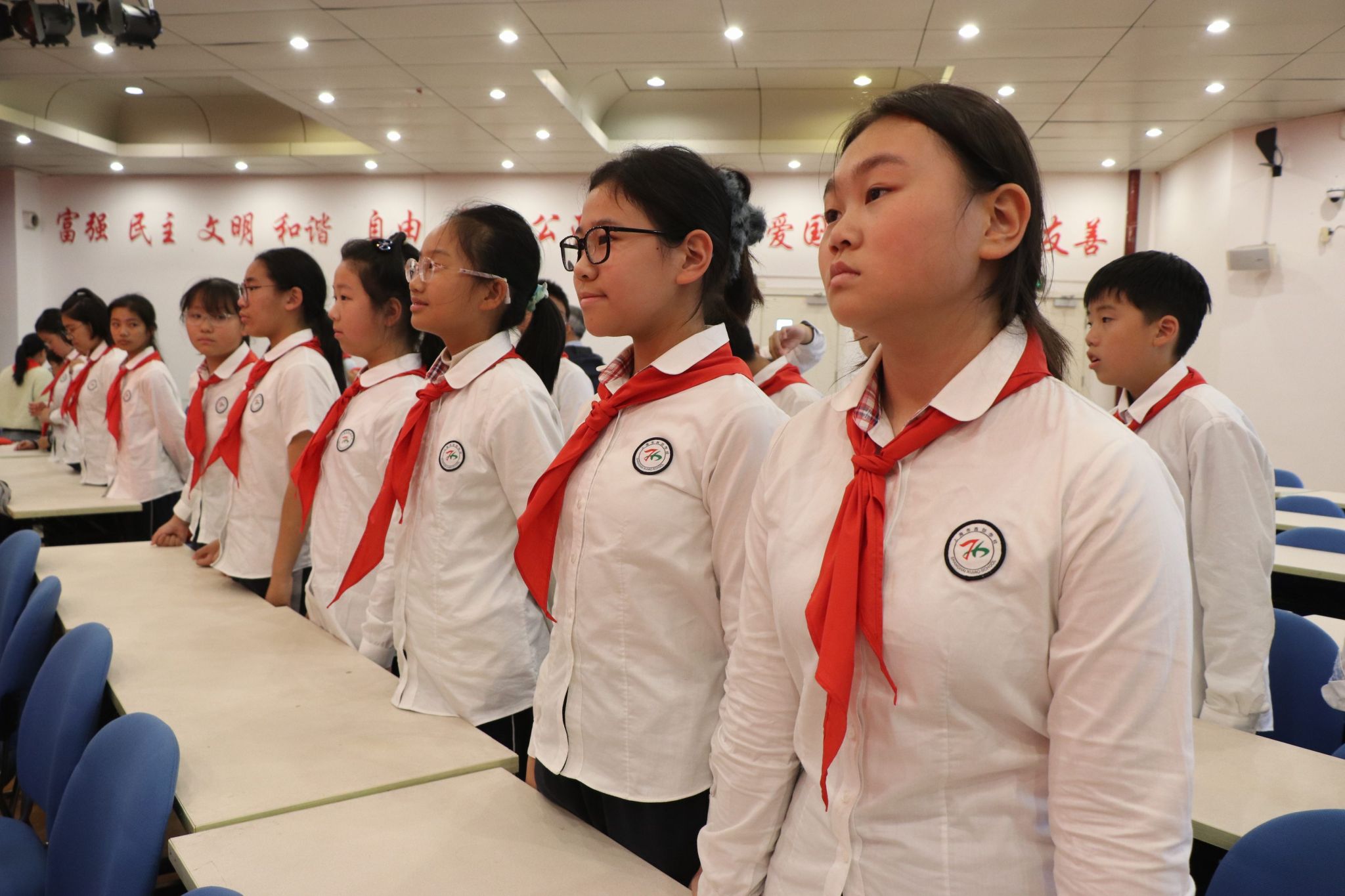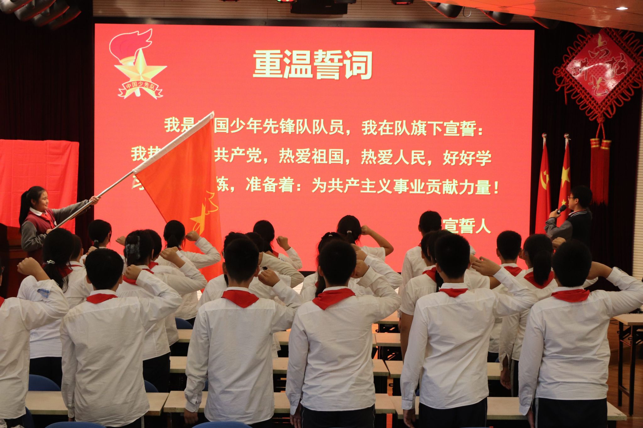 展示结束后,校大队委员、七(1)中队花业宸带领全体队员重温入队誓言,铿锵誓言回荡在整个会场。