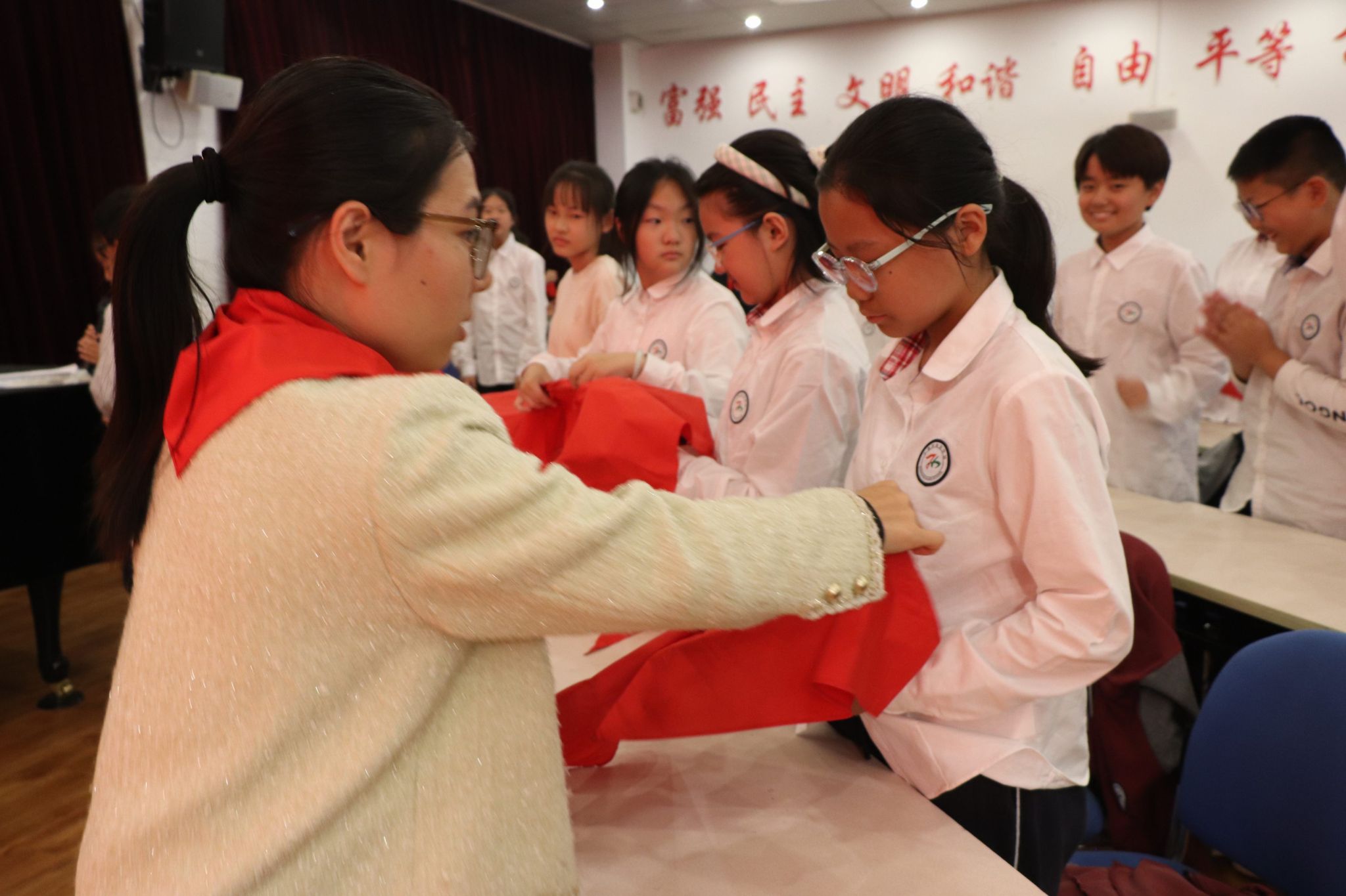 中队辅导员们为队员们授予崭新的大号红领巾。队员们双手接过这份象征成长与责任的红领巾,认真佩戴在胸前。他们深知,大号红领巾不仅是尺寸的变化,更是成长的印记,意味着自己将以此为起点,肩负起新时代好少年的使命。