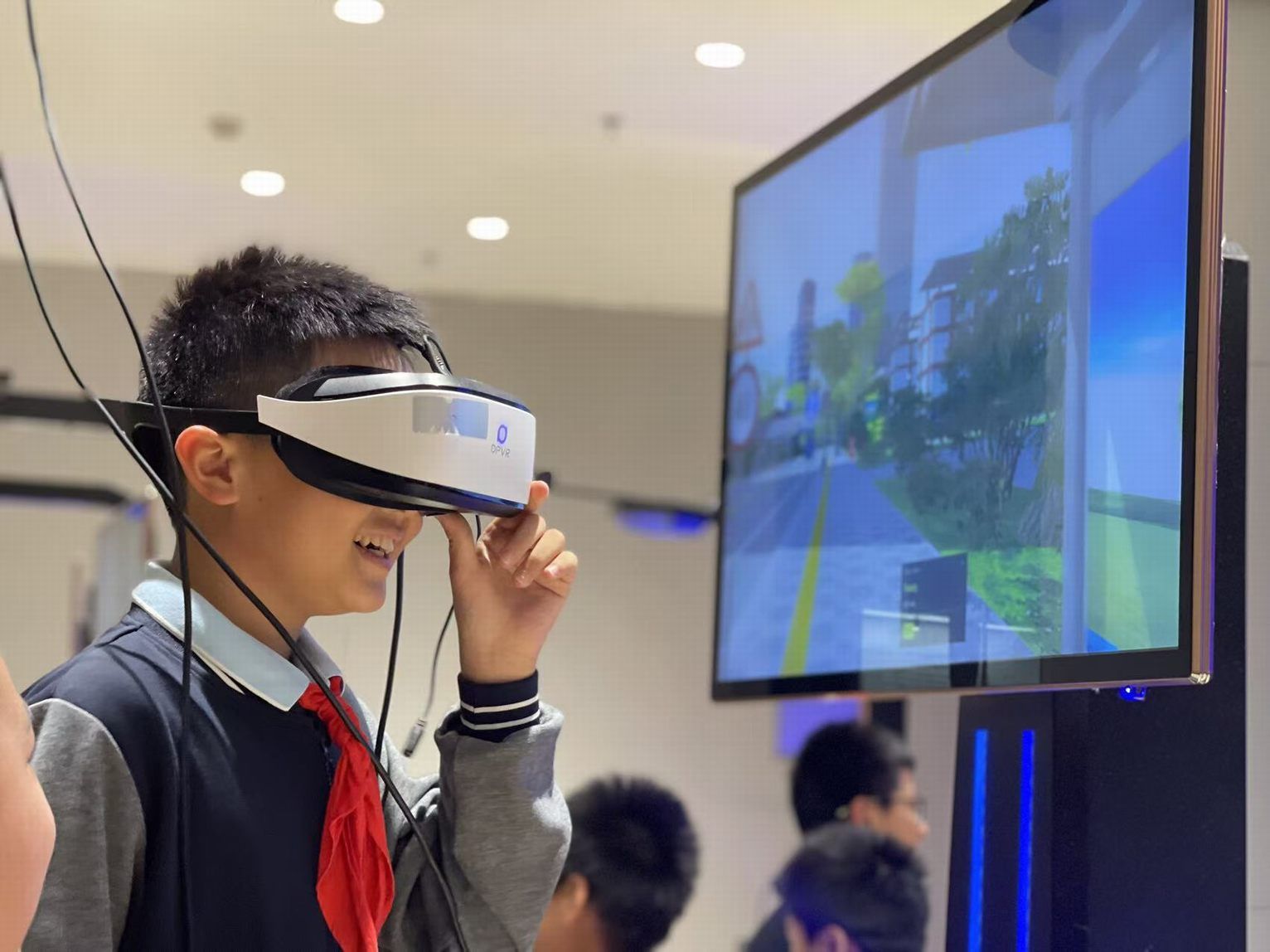 在道路交通安全实训区,同学们通过VR模拟行走,在复杂的模拟路口学习如何观察交通信号、规避车辆盲区。此外,老师通过典型的“鬼探头”等事故案例,深入讲解了内轮差、视觉盲区的致命风险,使大家真正懂得了“知危险,会避险”的必要性。