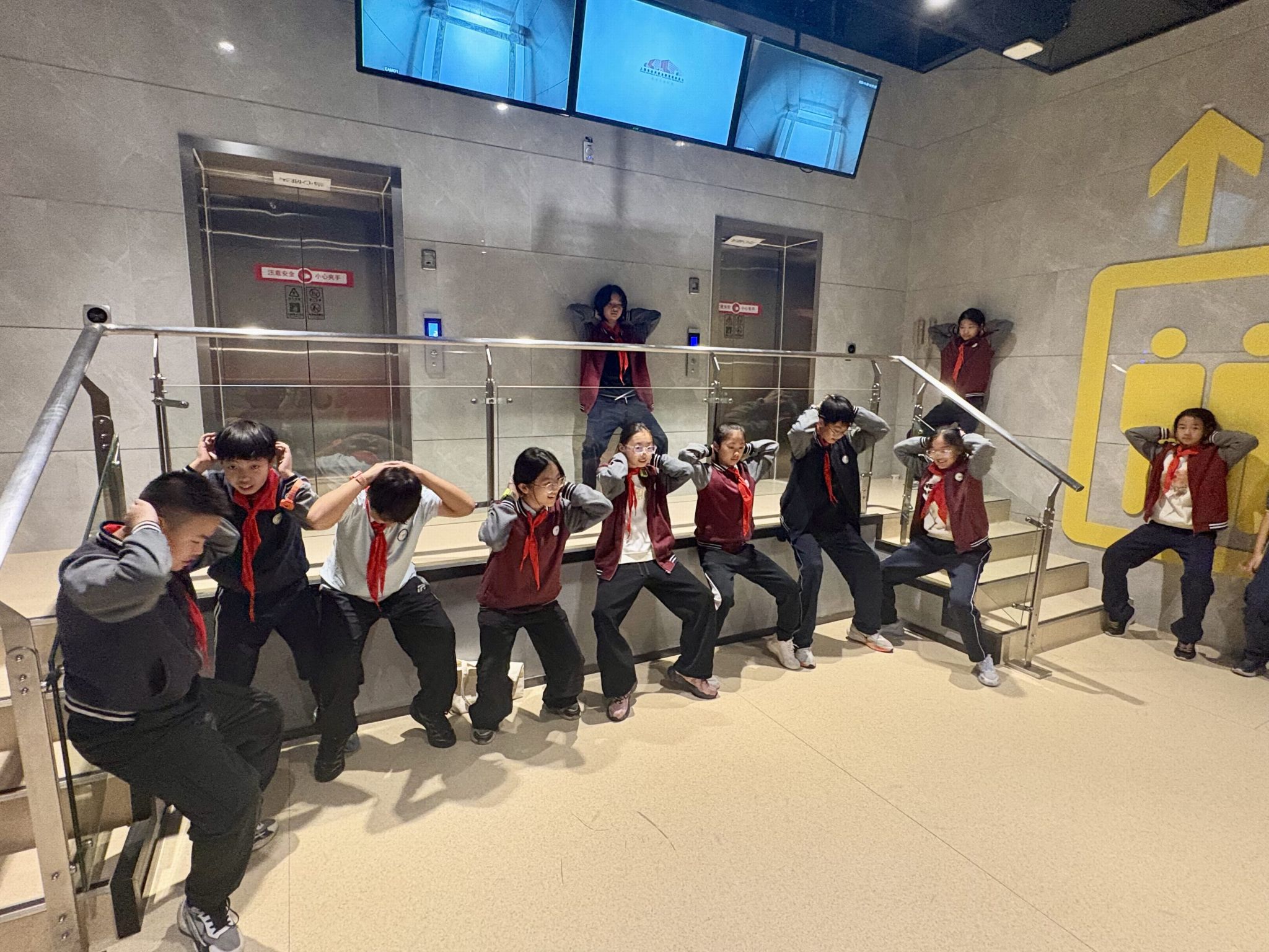 通过模拟真实场景,同学们了解了日常乘坐楼梯、扶梯、电梯的安全常识,学习了在紧急情况下如何采取正确避险措施。