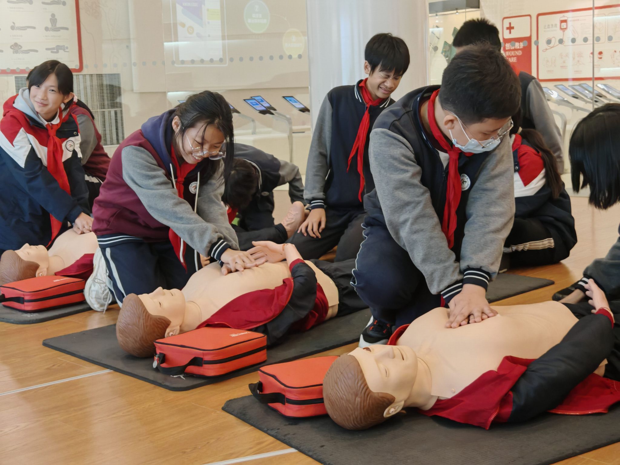 “先生,先生,你怎么了!”在急救技能实训教室,同学们神情专注,一遍遍练习呼救、评估、胸外按压和人工呼吸。这堂课让同学们意识到,每个人都可能成为突发心脏骤停患者的“第一响应人”,掌握这项技能,就是为生命重启希望。