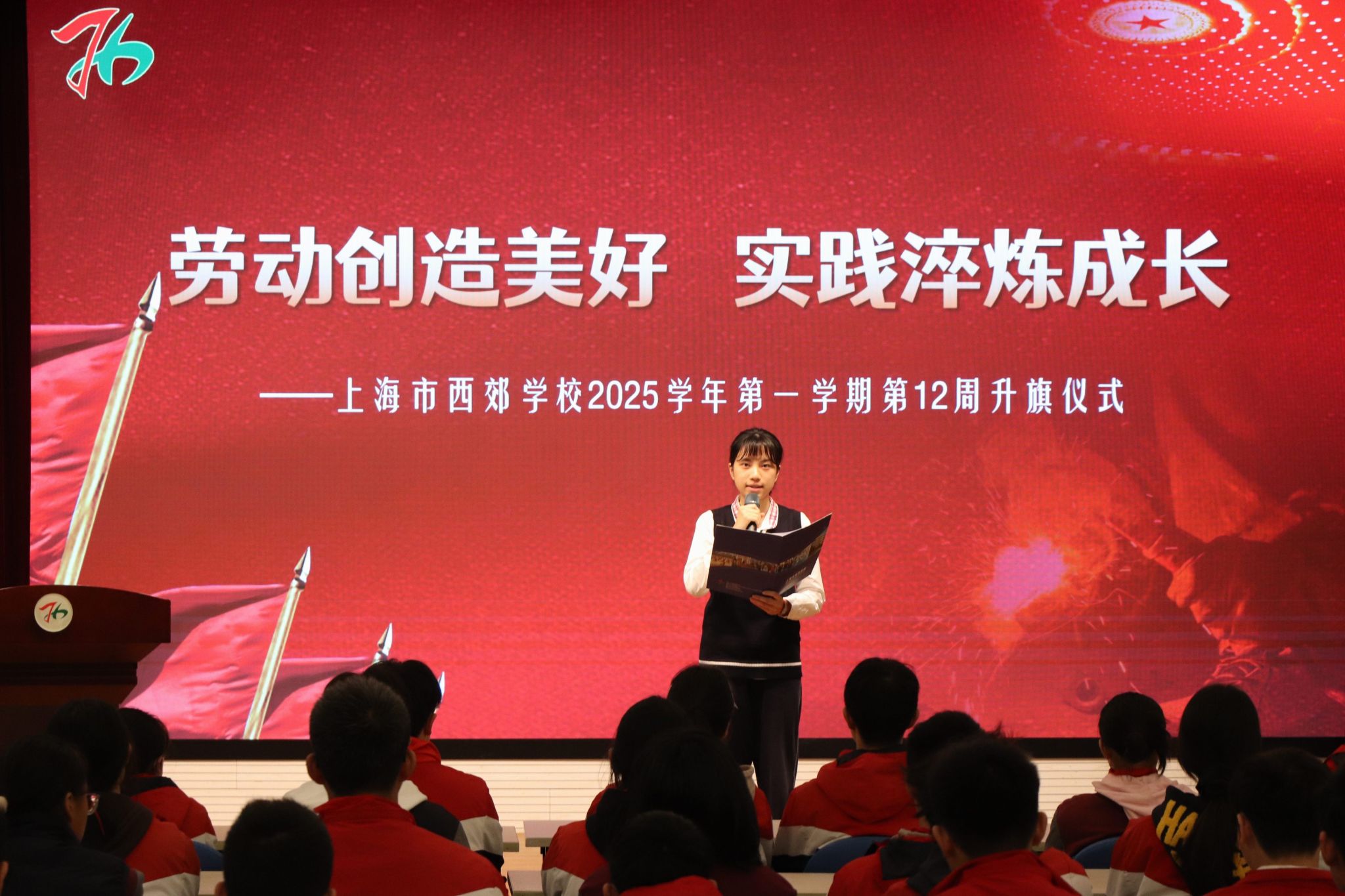 本周,上海市西郊学校以“劳动创造美好,实践淬炼成长”为主题开展升旗仪式,引导大家在动手实践中淬炼品格、收获成长。