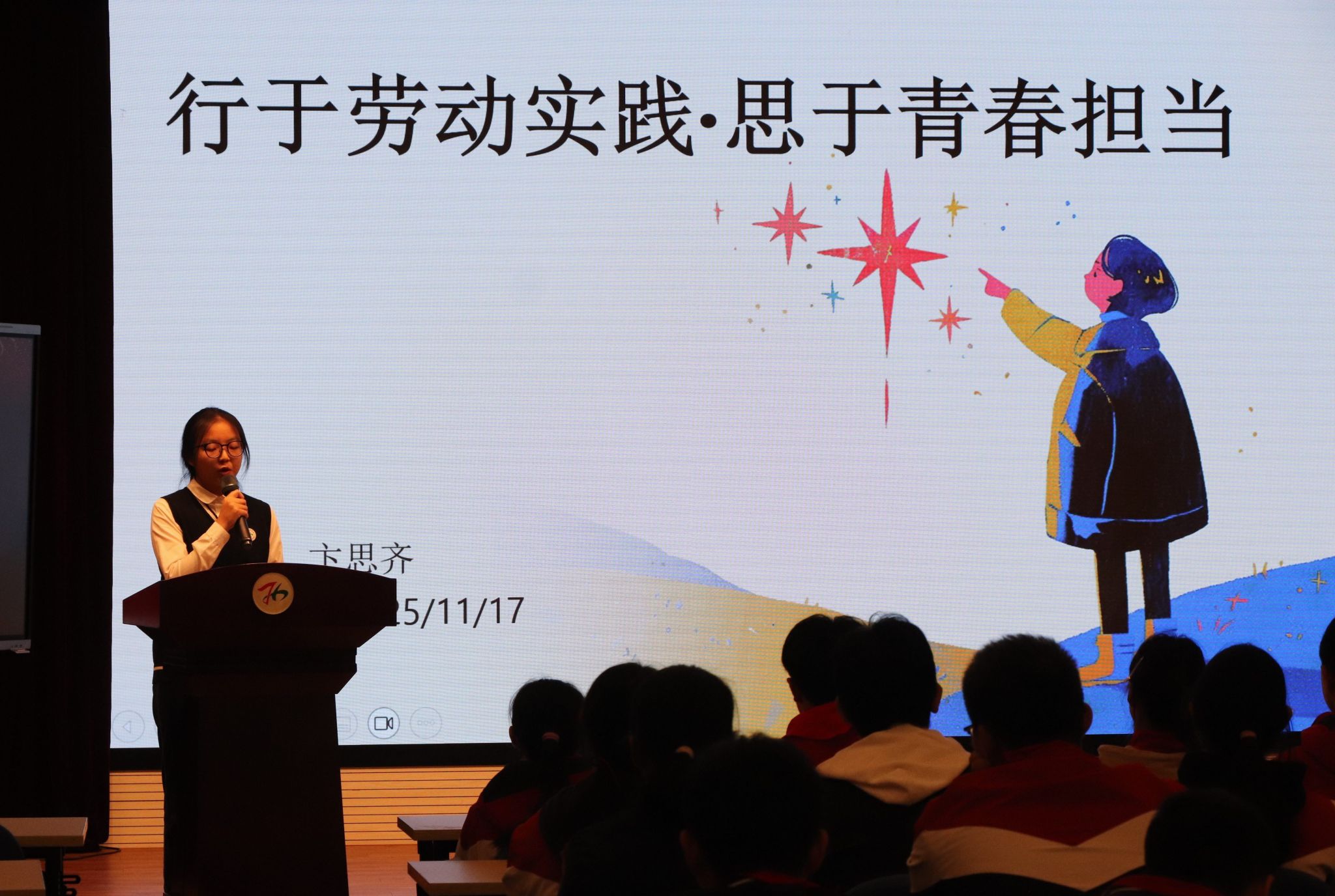 同学们的精彩展示,多维度展现了劳动的丰富内涵。随后,学生发展中心副主任范帼敏老师作国旗下讲话。她希望同学们懂得劳动是成长的必修课,是创造美好生活、实现人生价值的根本途径,进一步坚定大家热爱劳动、尊重实践的价值追求。