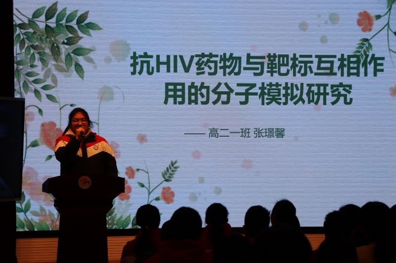高二(1)班的张璟馨同学则聚焦生物相关课题,分享了她的研究过程和心得体会,表现了青少年的科研视野与责任担当。