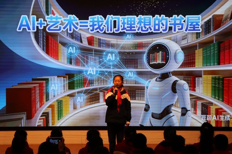 项目报告环节中,六(1)中队同学们带来《“AI+艺术”=我们理想的书屋》儿童友好书屋设计作品,将科技元素与美学创意完美融合,呈现了充满童趣与智慧的校园场景创新。