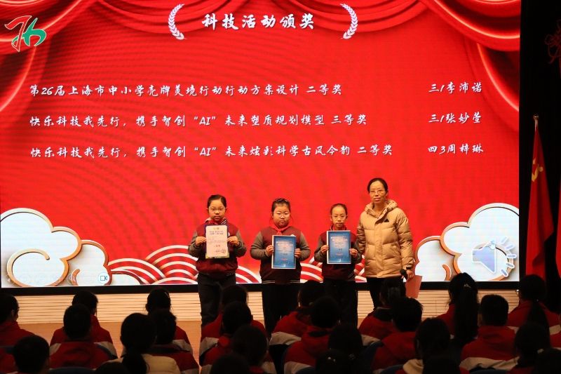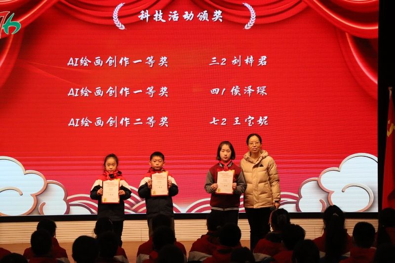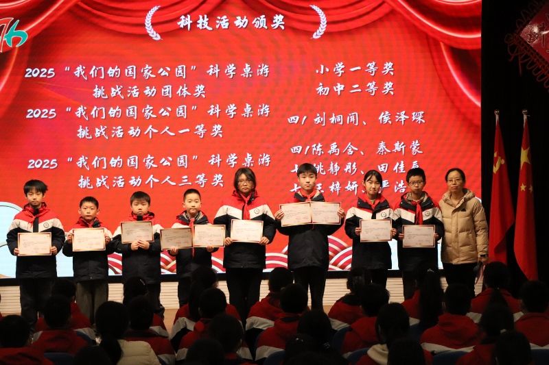 在表彰环节中,戚校长宣读了在各类科技活动中表现突出的集体与个人获奖名单,并为获奖同学颁奖。掌声中,每一份荣誉都成为对科创热情的肯定、对探索精神的激励。