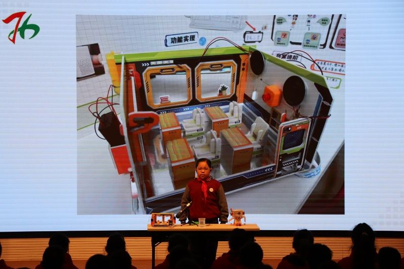 在微分享环节,三(1)中队的李沛诺同学带来《小小智能机器人》与《智能教室》的创意展示。通过生动的作品分享,展现了科技为校园学习生活带来的便捷与美好。