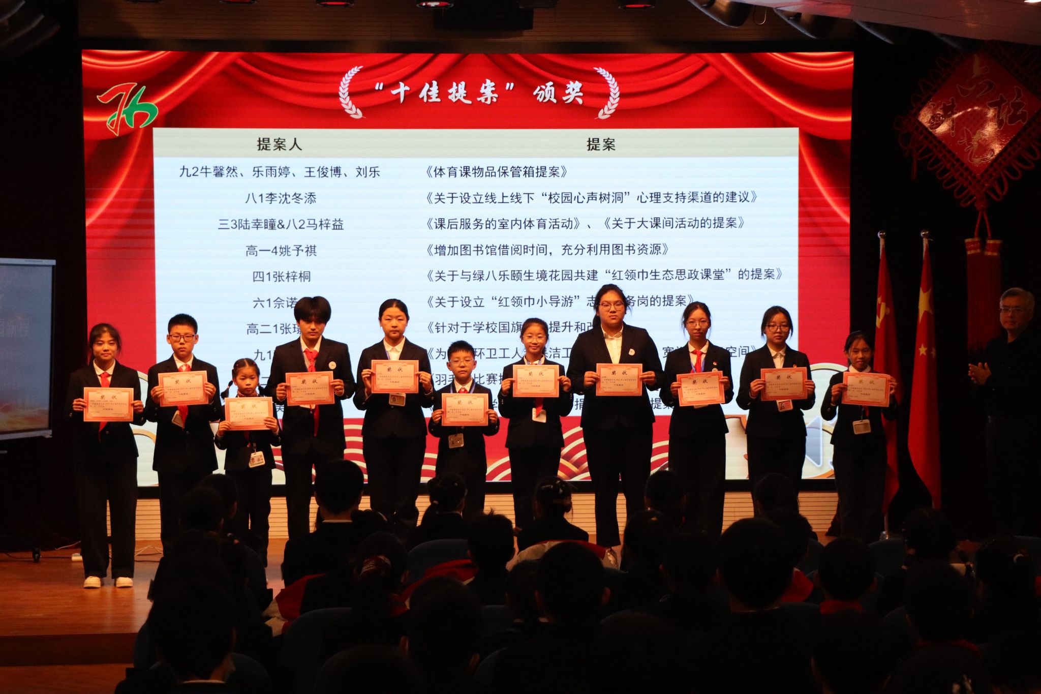 颁奖环节将现场气氛推向高潮,大会为“十佳”提案获得者以及在各项活动中表现突出的集体和个人颁发荣誉证书,表彰他们的积极参与和优异表现,激励更多同学在未来的学习生活中勇于创新、乐于奉献。