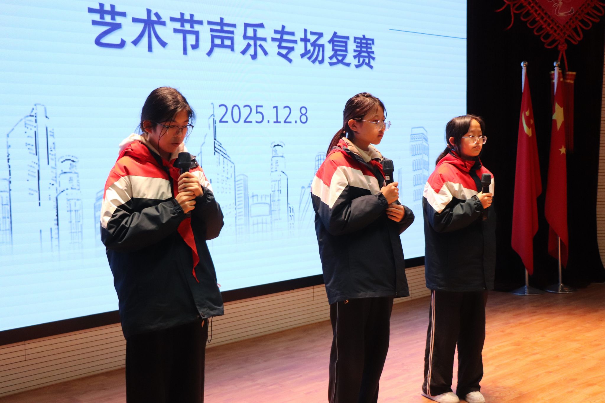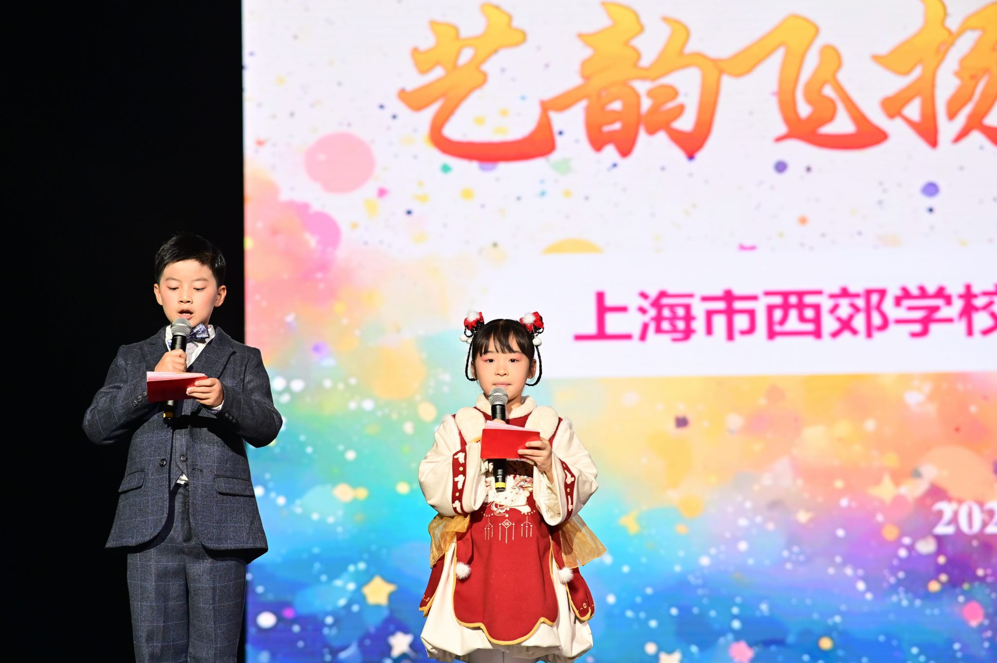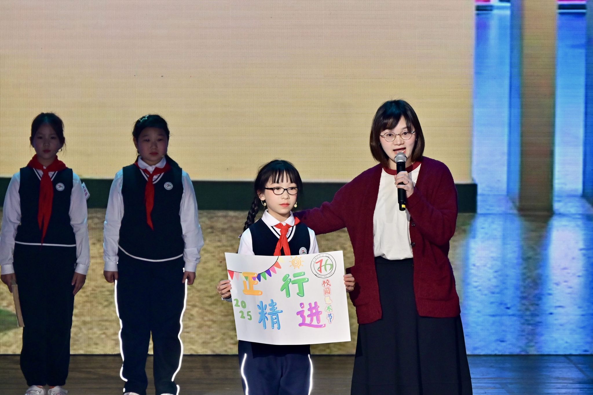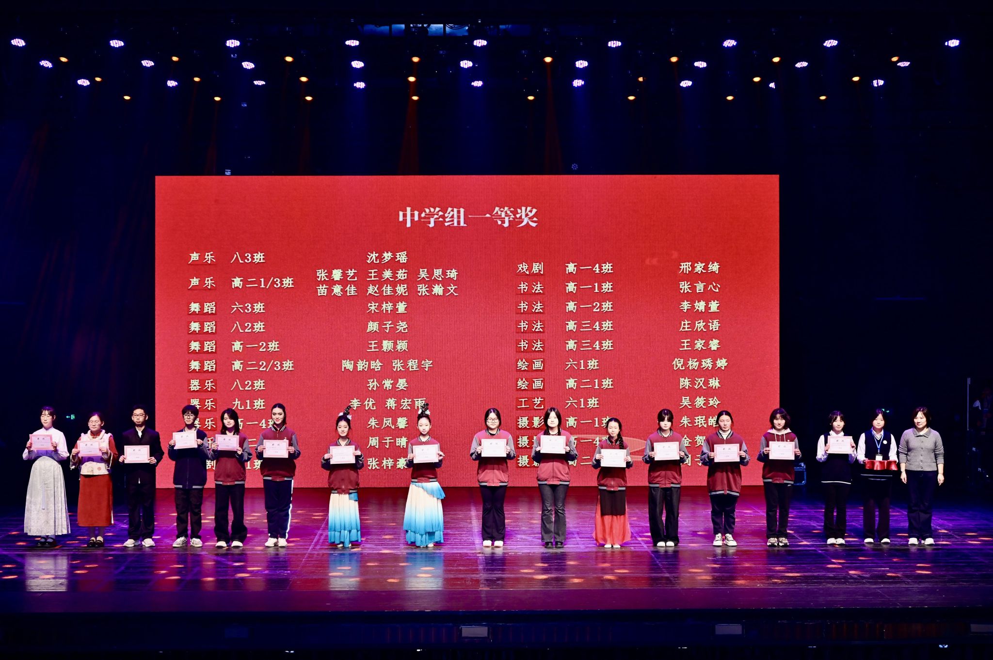 本届艺术节历时一个月,以八项艺术专场赛事为载体,点燃全校师生的艺术热忱。同学们踊跃参与、尽情展演,在竞技中展示才华,在舞台上绽放青春活力。颁奖仪式环节,表彰氛围热烈庄重:戚灵灵副校长为获得最佳组织奖的班级代表颁奖;赵伟副校长和章煜副校长分别为各专场比赛小学组和中学组一等奖获得者颁奖。一张张奖状承载着荣誉与认可,更凝聚着付出与成长,激励着西郊学子继续追寻艺术之美。