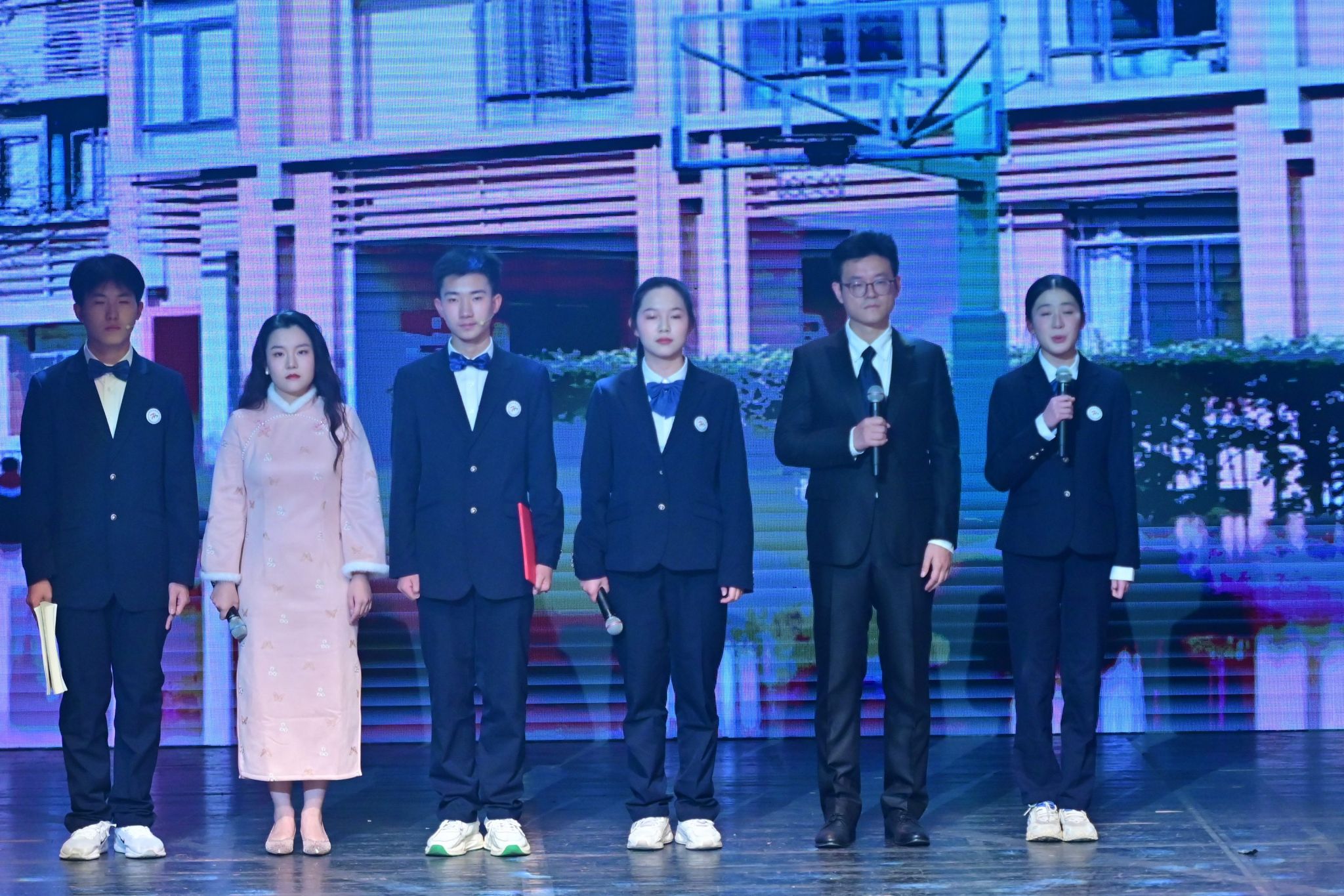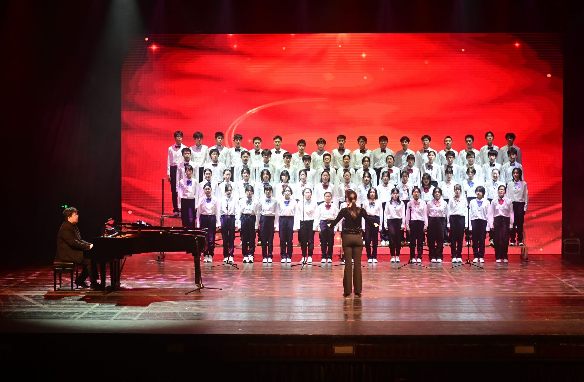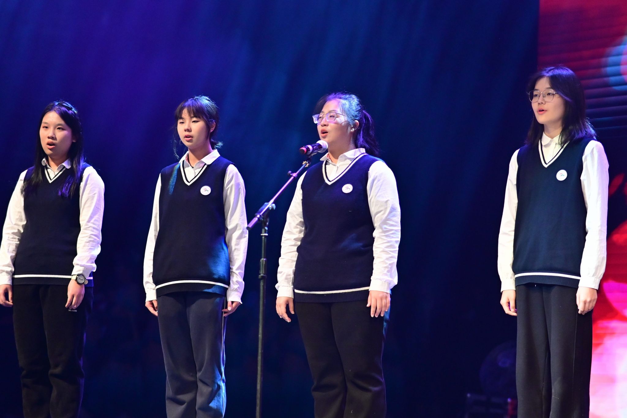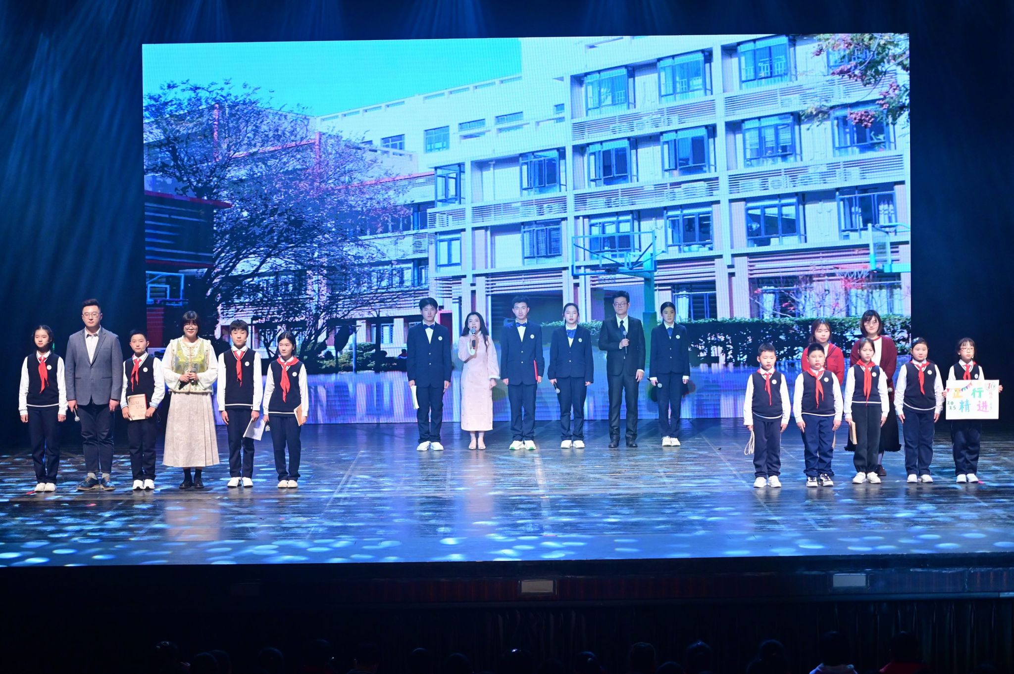 激动人心的文艺汇演将活动推向高潮。师生校友同台献艺、各展风采,为现场观众呈现了一场兼具思想性与观赏性的高水平艺术盛宴。节目形式丰富多元,合唱、独唱、舞蹈、情景朗诵、器乐合奏、戏曲等轮番登场。既有小学、初中、高中各学段学子及教师、校友的参与,也有跨学段师生联袂演绎;既有中国古典传统艺术的典雅厚重,也有中西合璧的创意碰撞,流行音乐、创新舞蹈的闪亮登场。全方位展现了西郊校园的艺术底蕴与师生的创作活力。