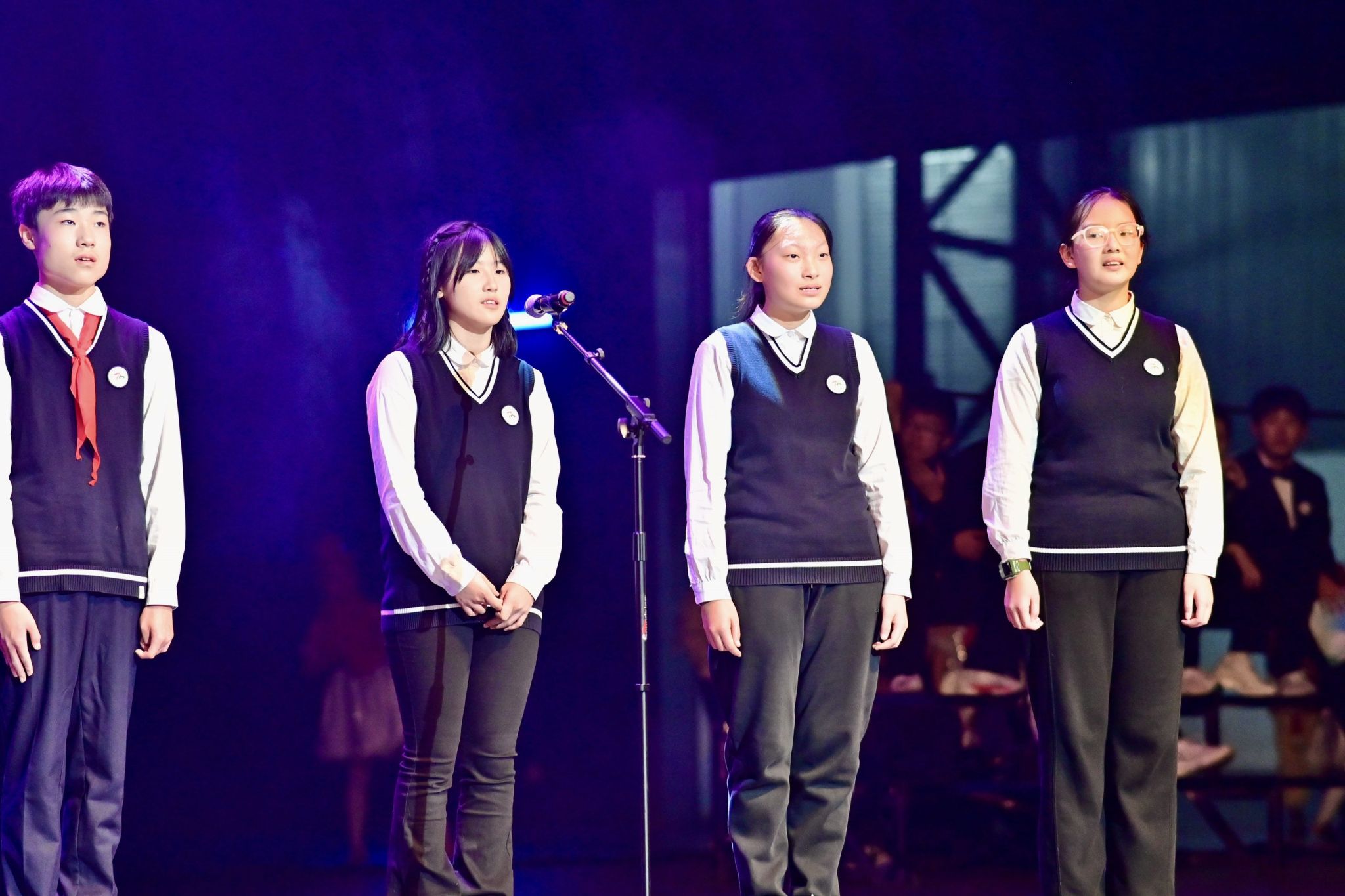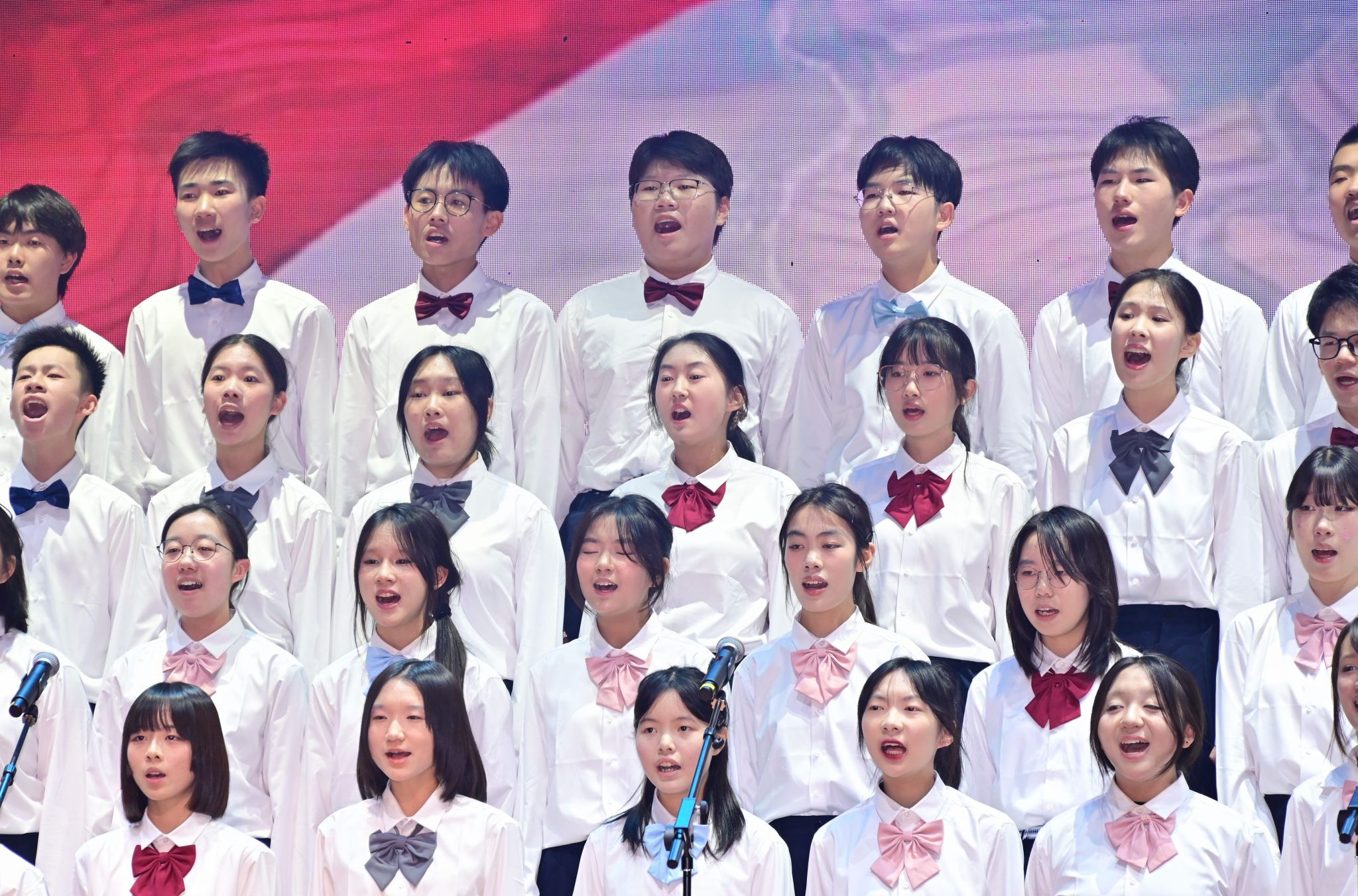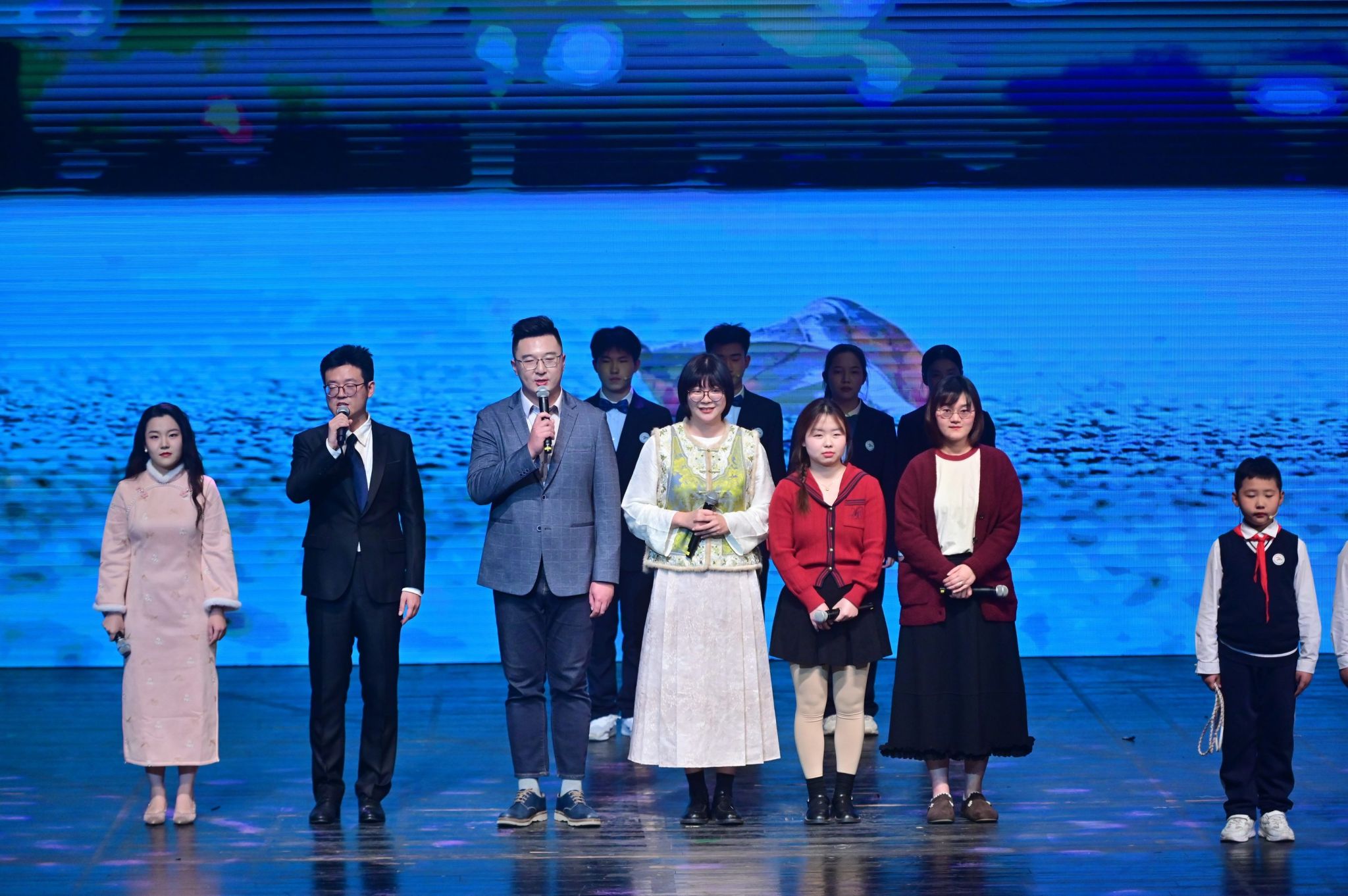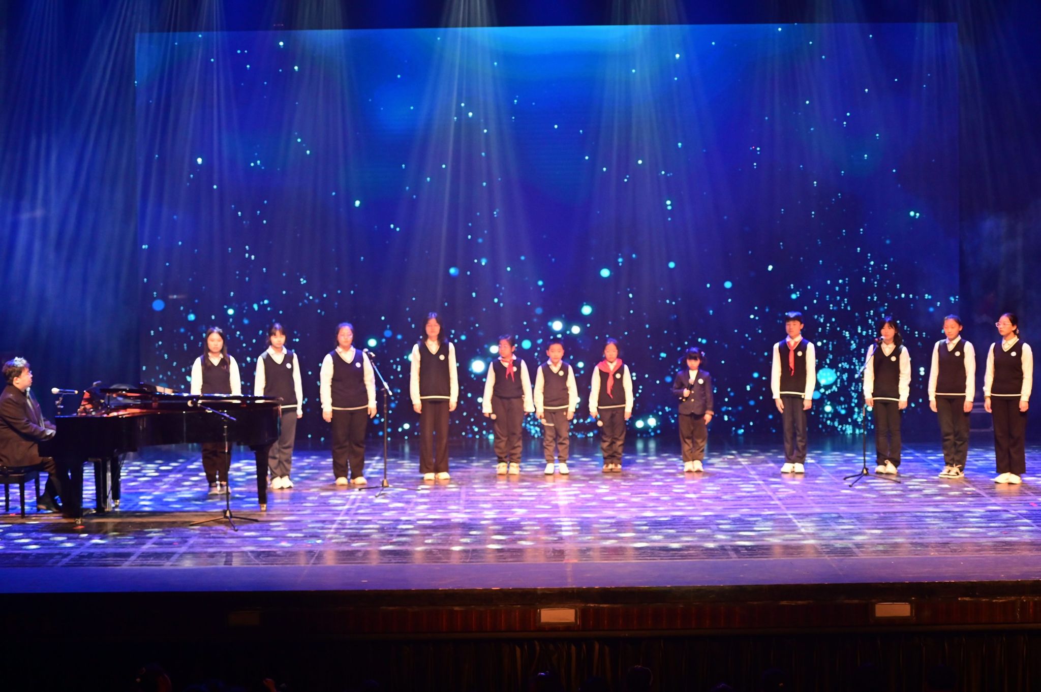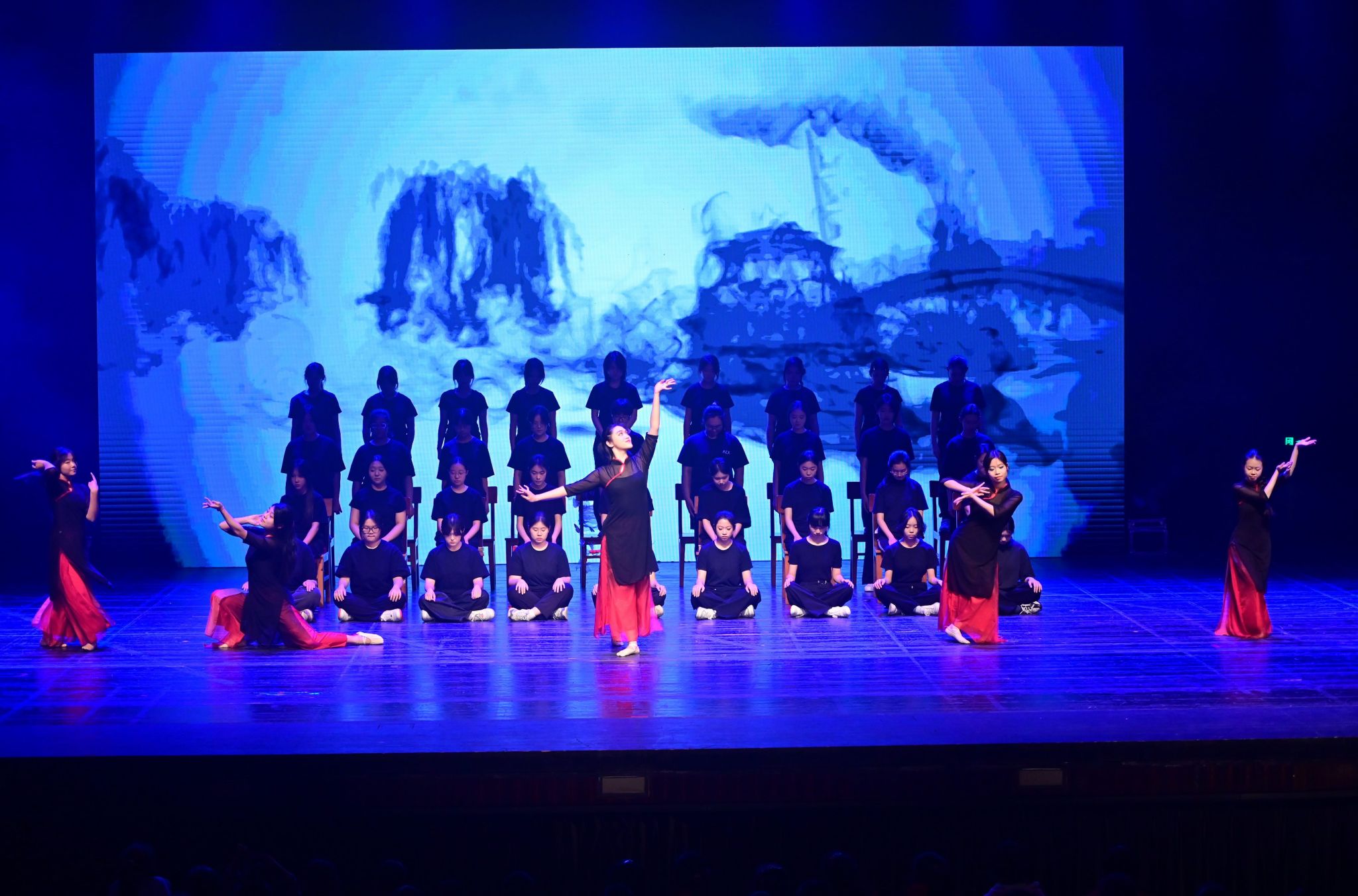 激动人心的文艺汇演将活动推向高潮。师生校友同台献艺、各展风采,为现场观众呈现了一场兼具思想性与观赏性的高水平艺术盛宴。节目形式丰富多元,合唱、独唱、舞蹈、情景朗诵、器乐合奏、戏曲等轮番登场。既有小学、初中、高中各学段学子及教师、校友的参与,也有跨学段师生联袂演绎;既有中国古典传统艺术的典雅厚重,也有中西合璧的创意碰撞,流行音乐、创新舞蹈的闪亮登场。全方位展现了西郊校园的艺术底蕴与师生的创作活力。