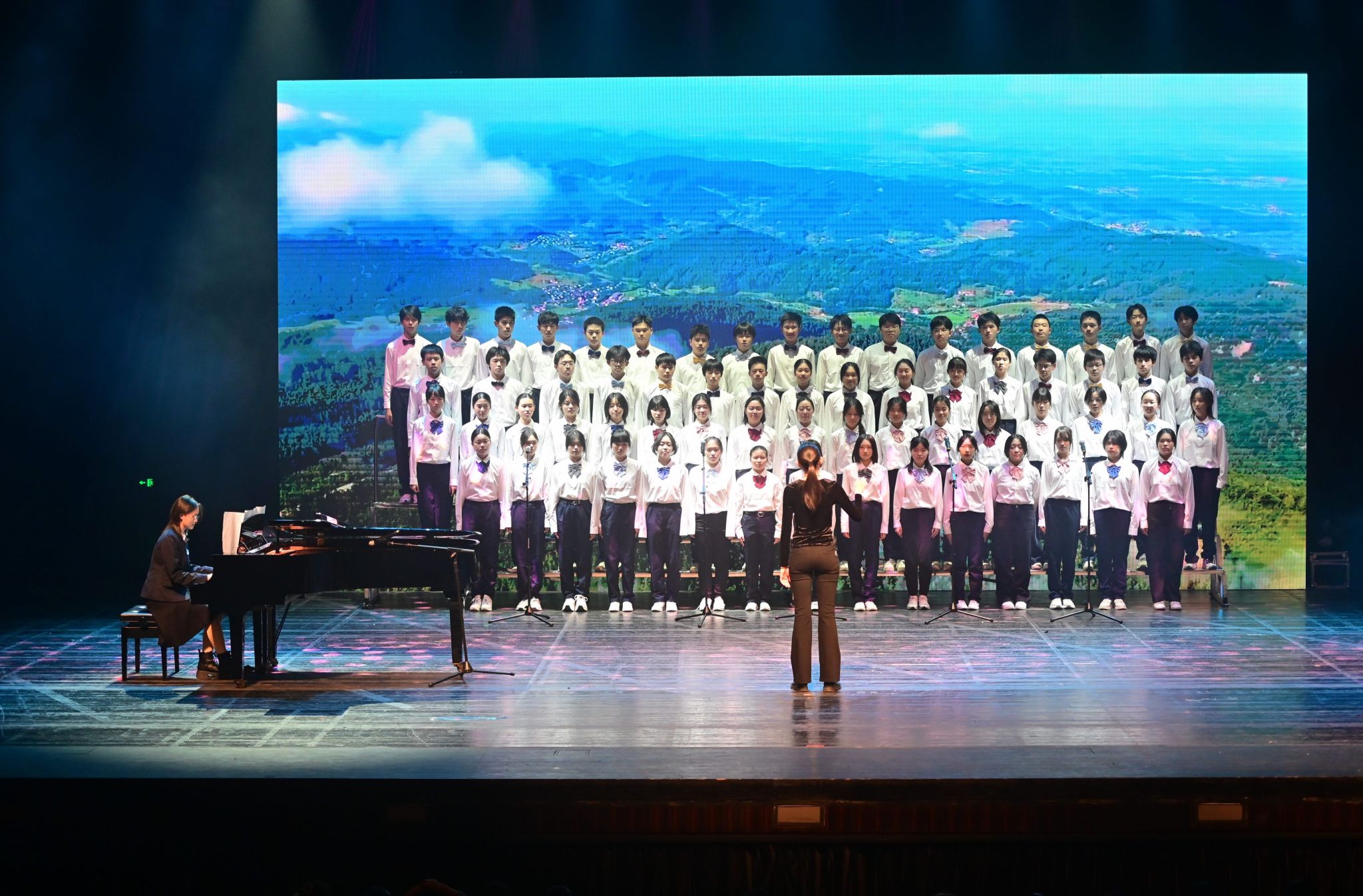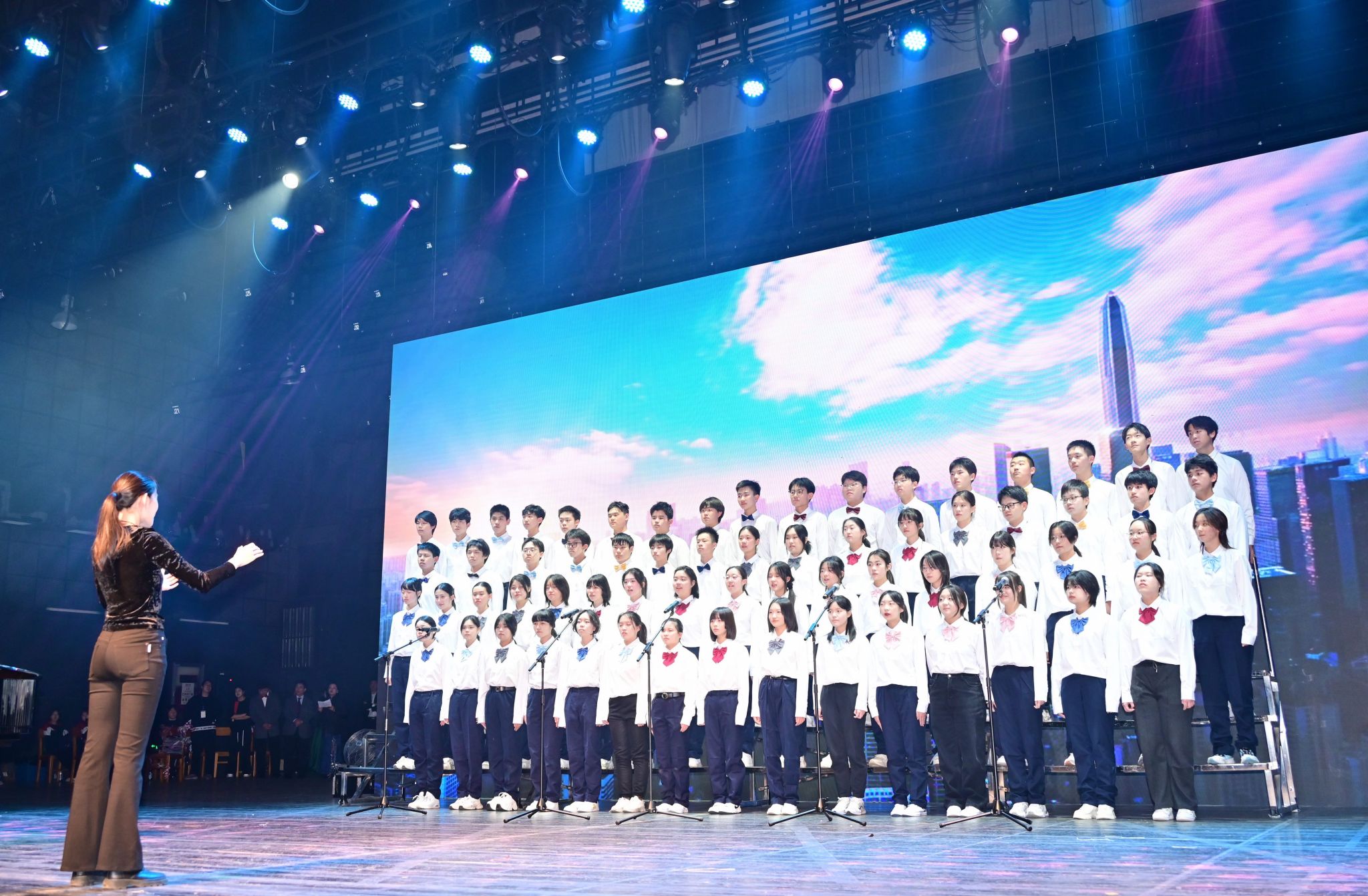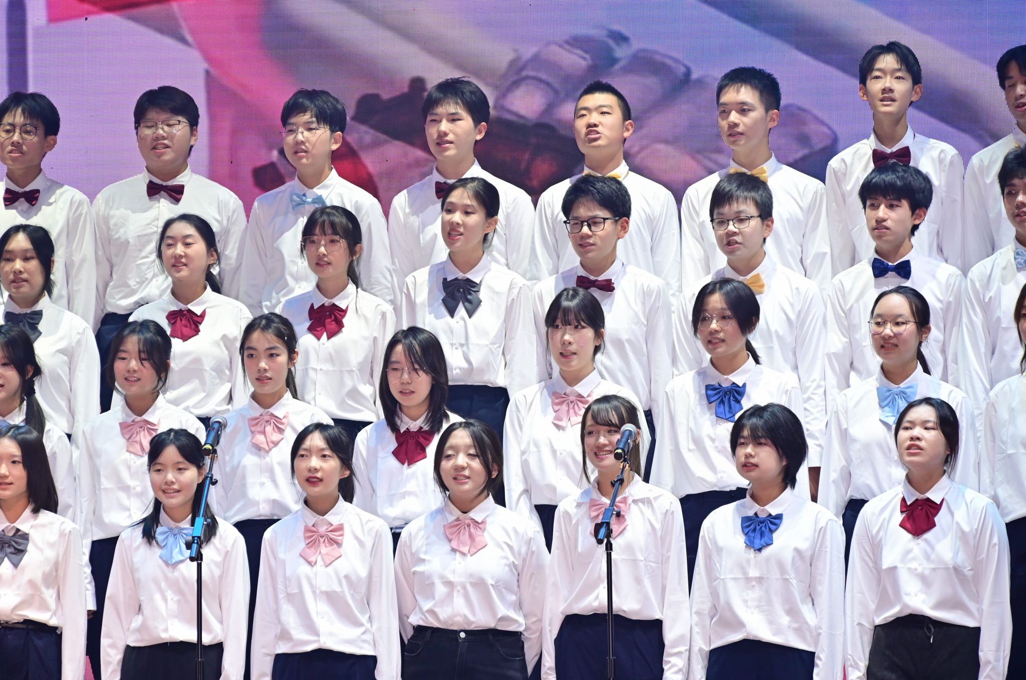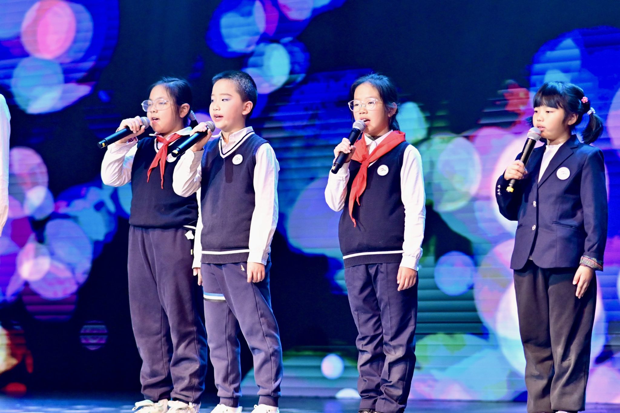 激动人心的文艺汇演将活动推向高潮。师生校友同台献艺、各展风采,为现场观众呈现了一场兼具思想性与观赏性的高水平艺术盛宴。节目形式丰富多元,合唱、独唱、舞蹈、情景朗诵、器乐合奏、戏曲等轮番登场。既有小学、初中、高中各学段学子及教师、校友的参与,也有跨学段师生联袂演绎;既有中国古典传统艺术的典雅厚重,也有中西合璧的创意碰撞,流行音乐、创新舞蹈的闪亮登场。全方位展现了西郊校园的艺术底蕴与师生的创作活力。