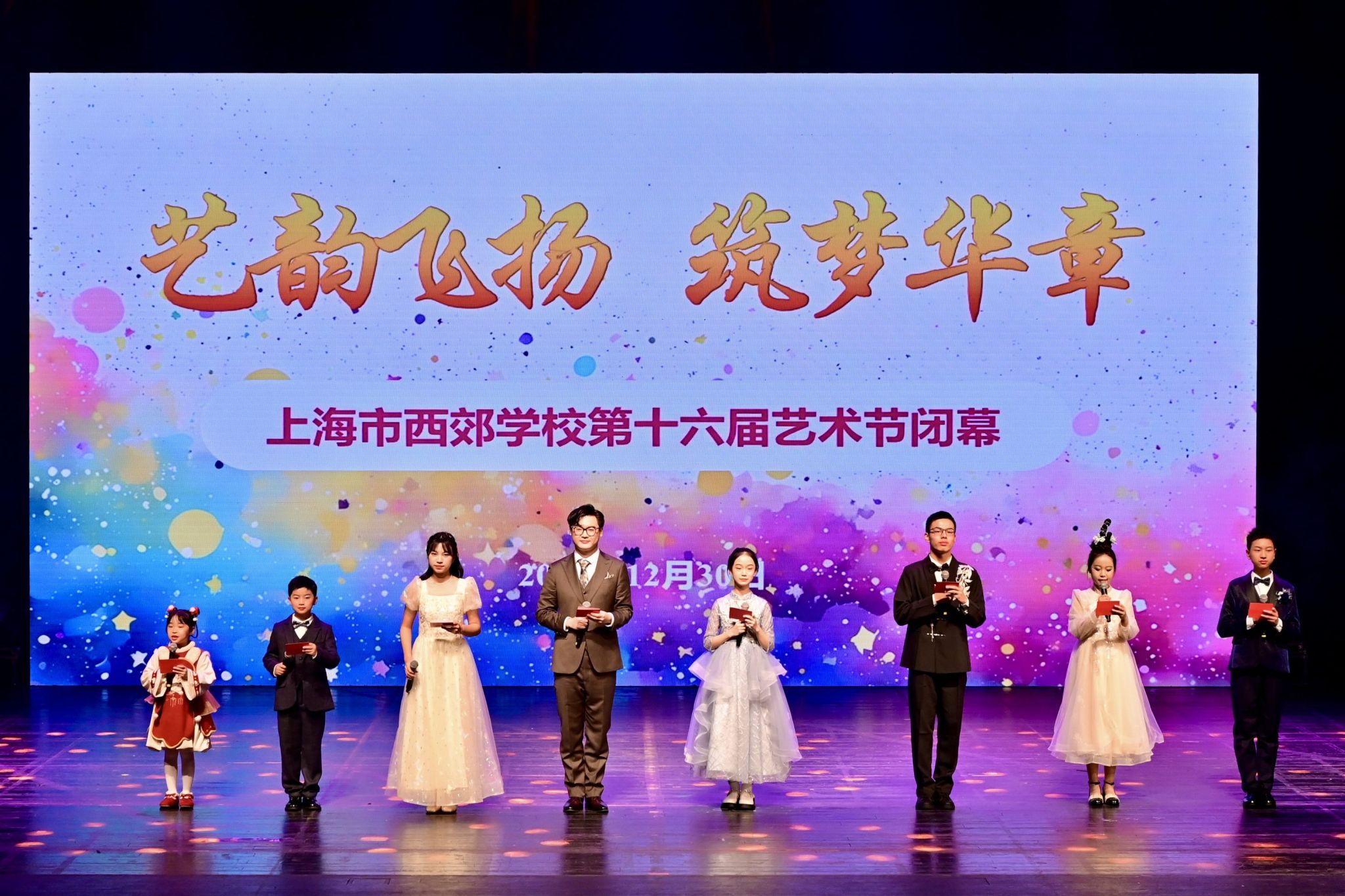 冬日暖阳遍洒校园,艺术馨香沁润心田。2025年12月30日,上海市西郊学校全体师生齐聚上海市国际舞蹈中心,隆重举行第16届校园艺术节闭幕式,为这场持续一个月的艺术盛宴画上圆满句点。