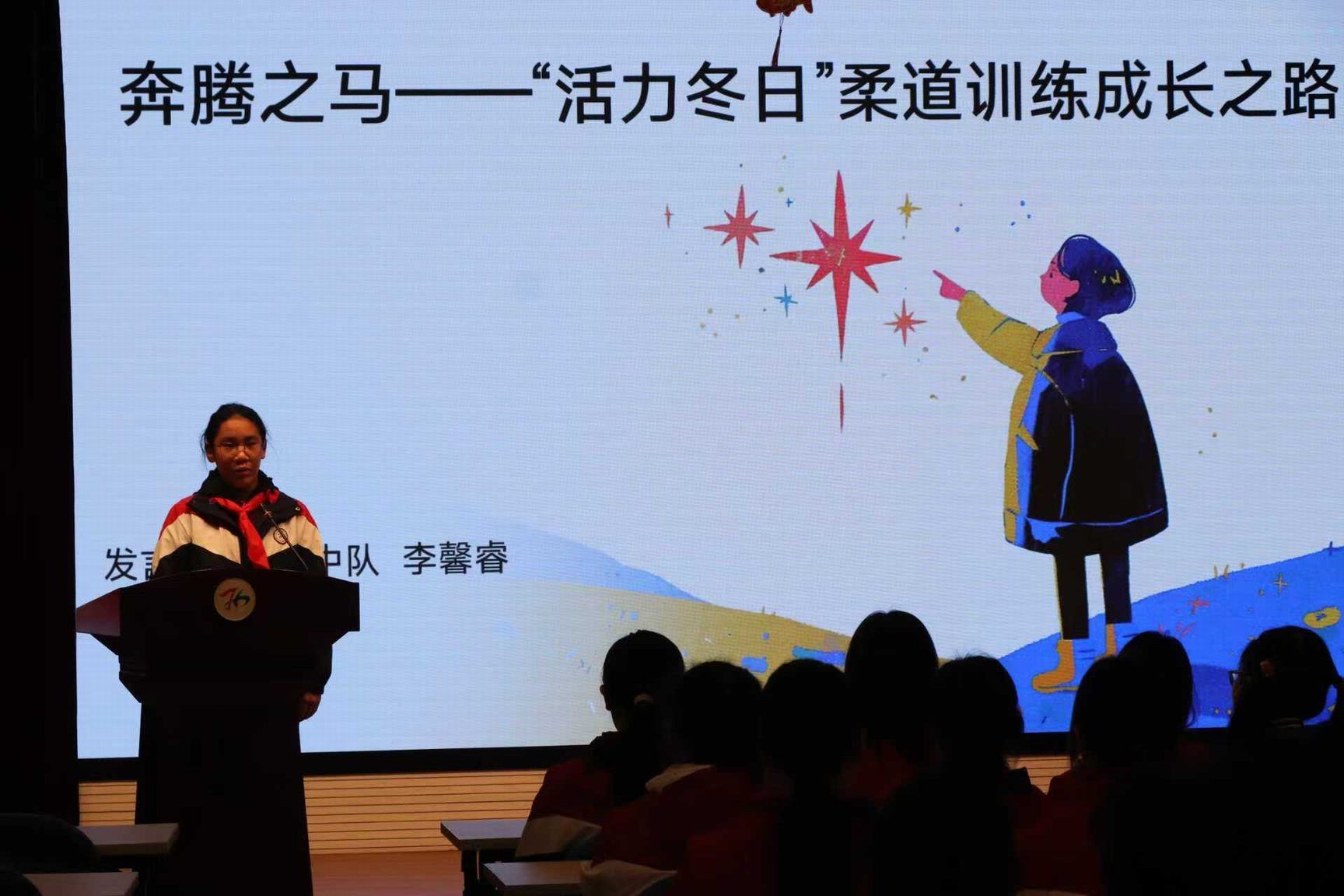 六1班李馨睿同学讲述了她在“活力冬日”体能训练中的坚持与成长,激励大家用汗水浇灌青春。