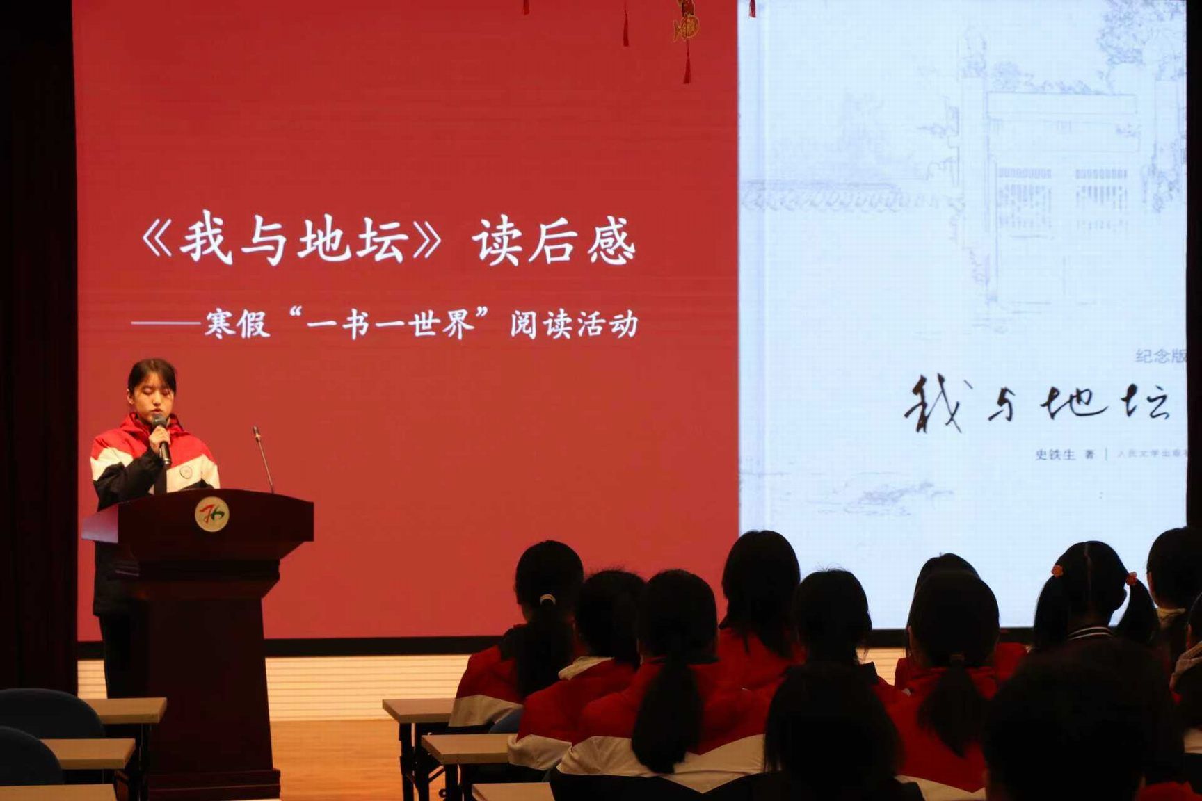 高一3班吴泓娆同学分享了阅读《我与地坛》的感悟。她以书为媒,在文字间畅游知识的海洋,在思考中点亮思想的星光。