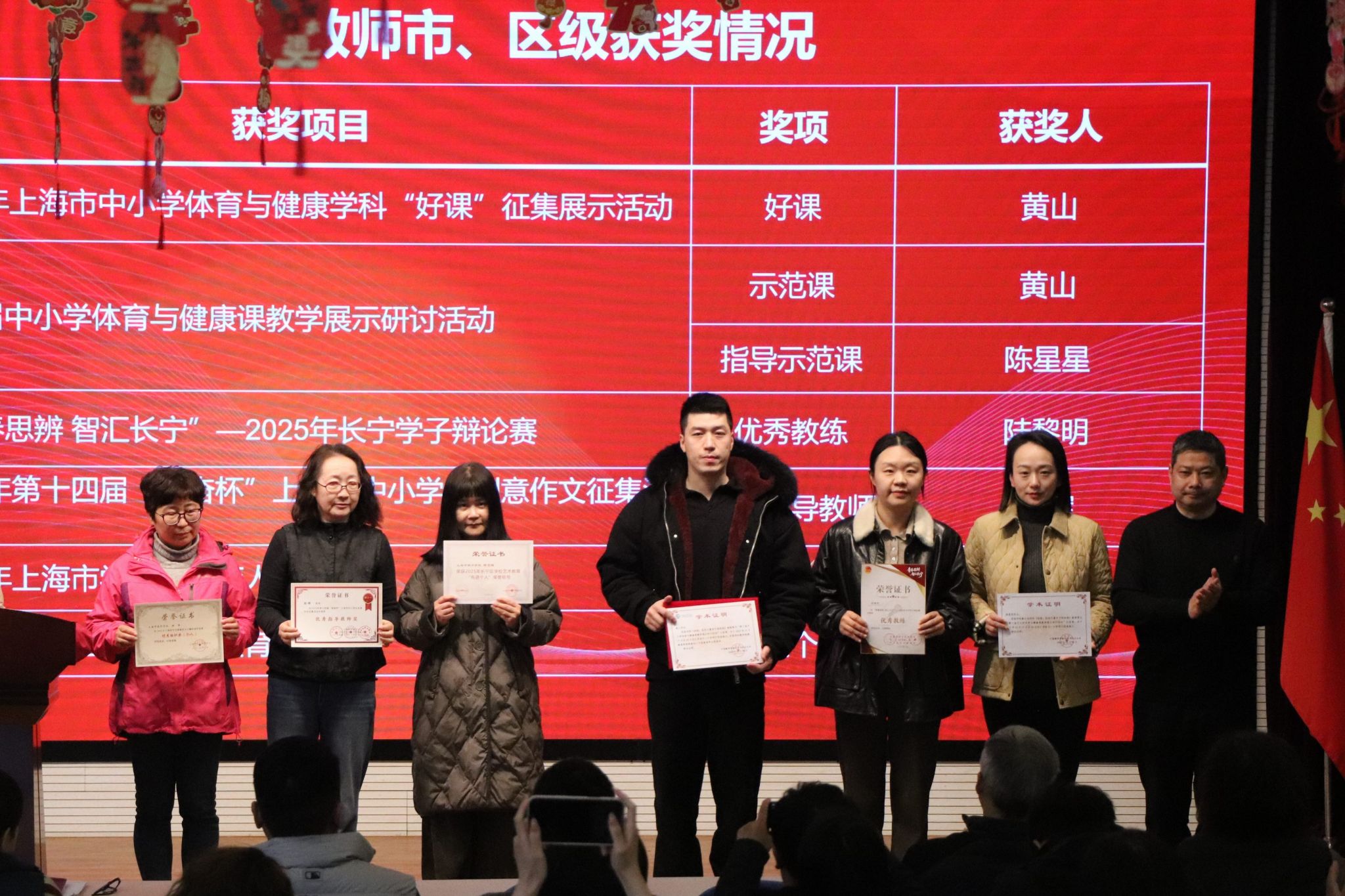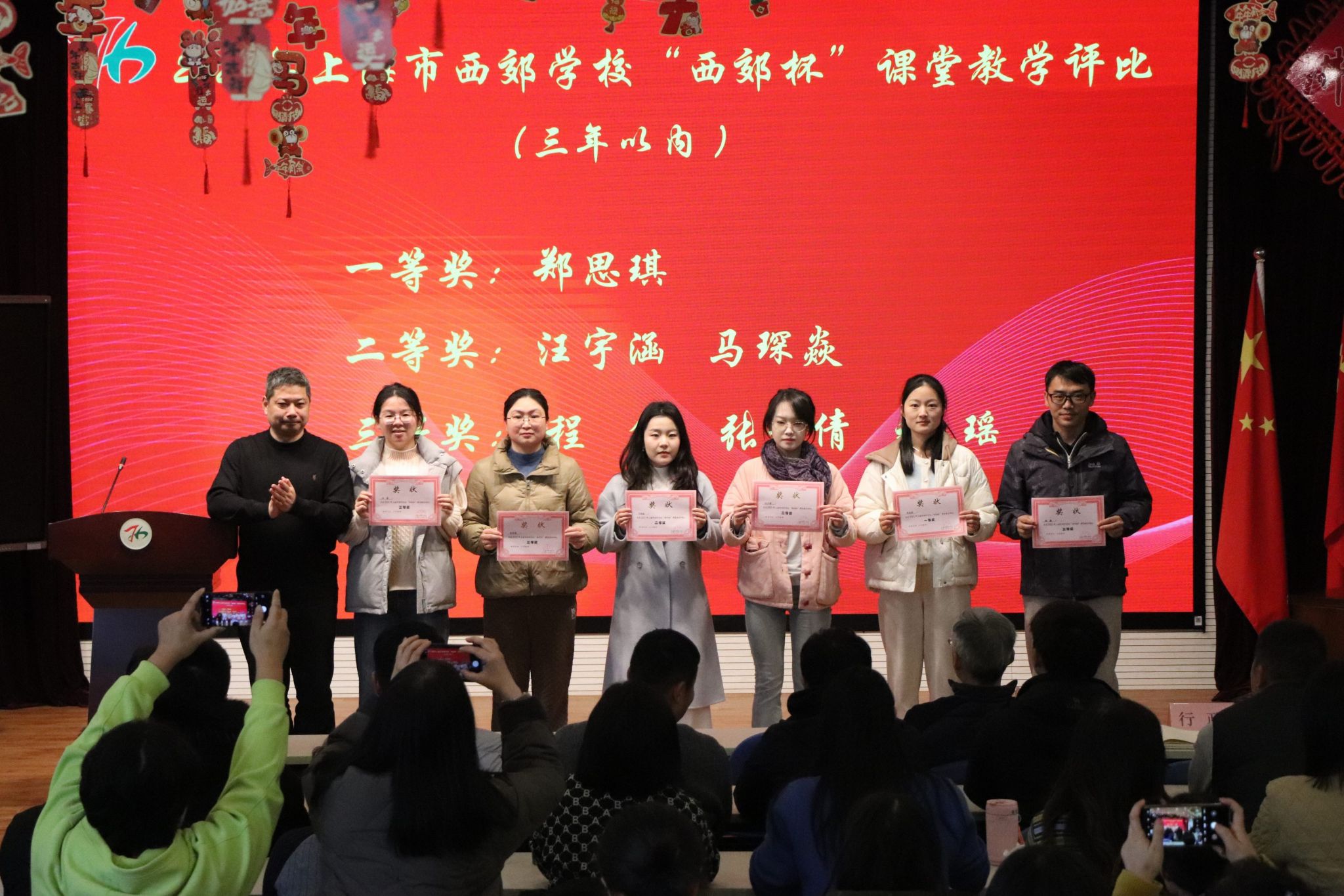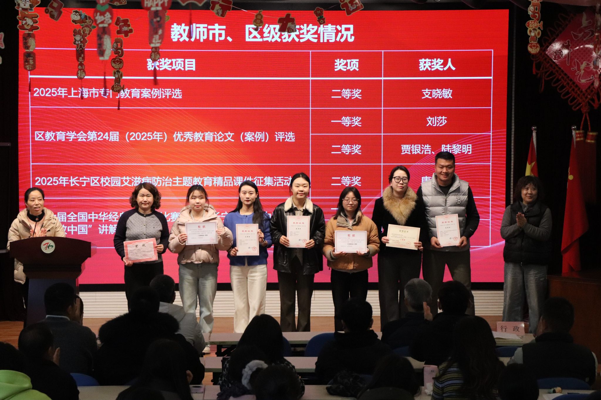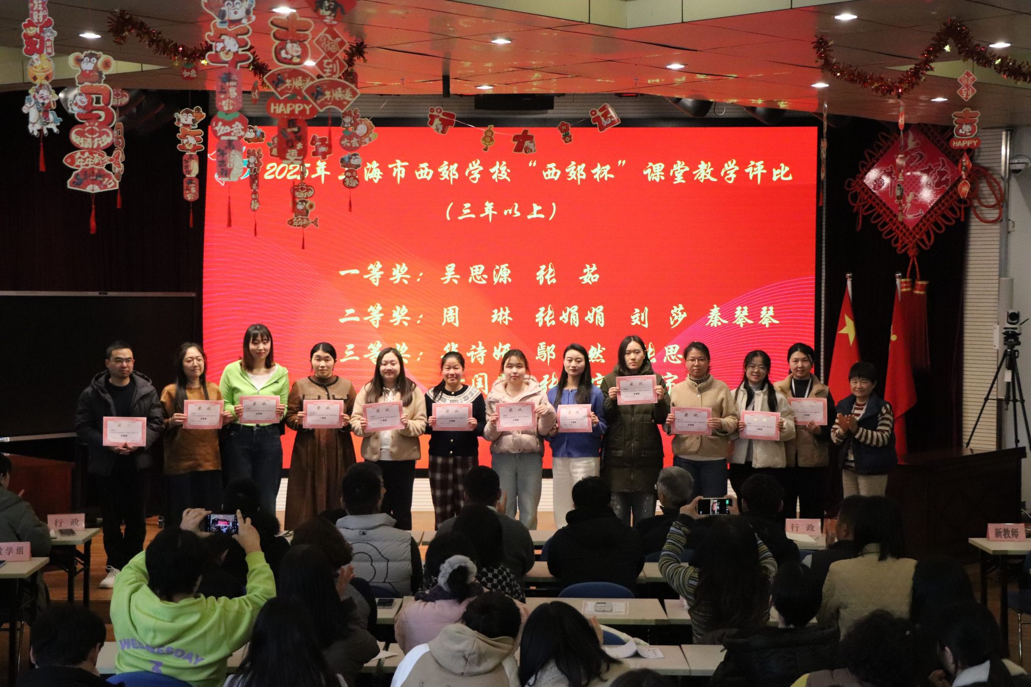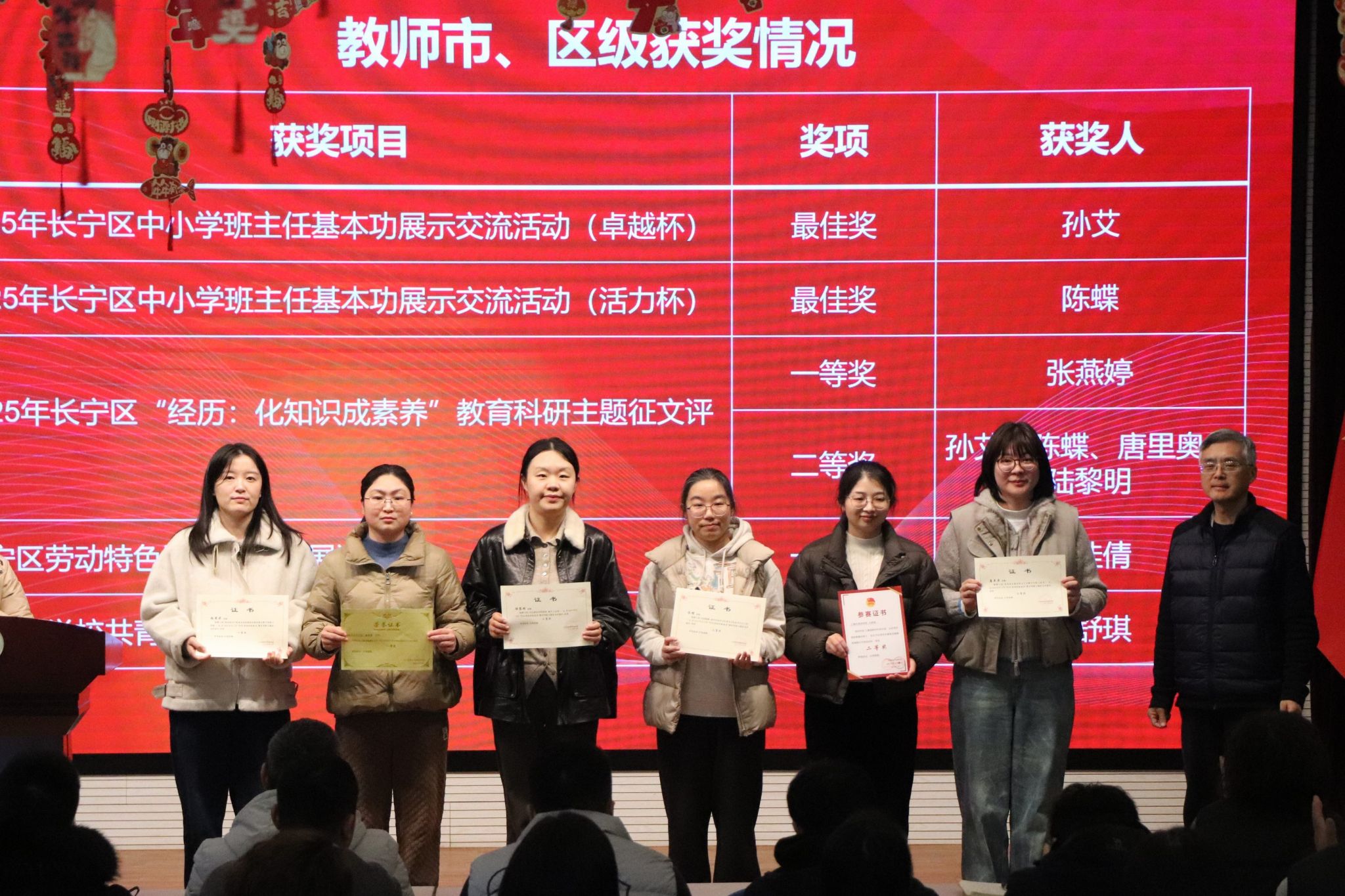 颁奖活动对在2025学年第一学期市级、区级各类教育教学评比中获奖的教师进行表彰。一份份荣誉,是深耕课堂的见证;一次次嘉奖,是潜心育人的肯定。学校鼓励全体教师以先进为标杆,踔厉奋发、再创佳绩。
