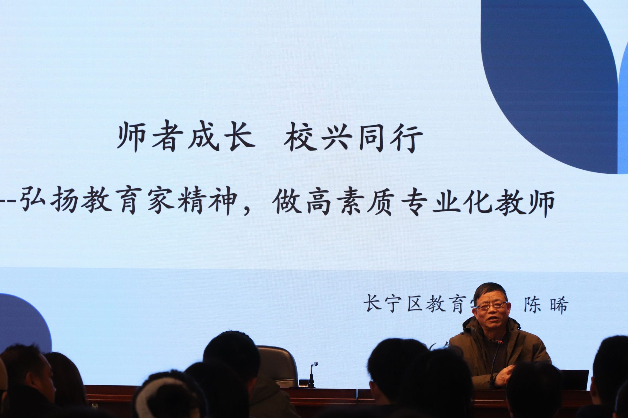 表彰既是肯定,更是新的起点。为引领教师深耕专业、提升素养,学校特邀原长宁区教育学院院长陈晞老师带来 “师者成长,校兴同行” 专题讲座。