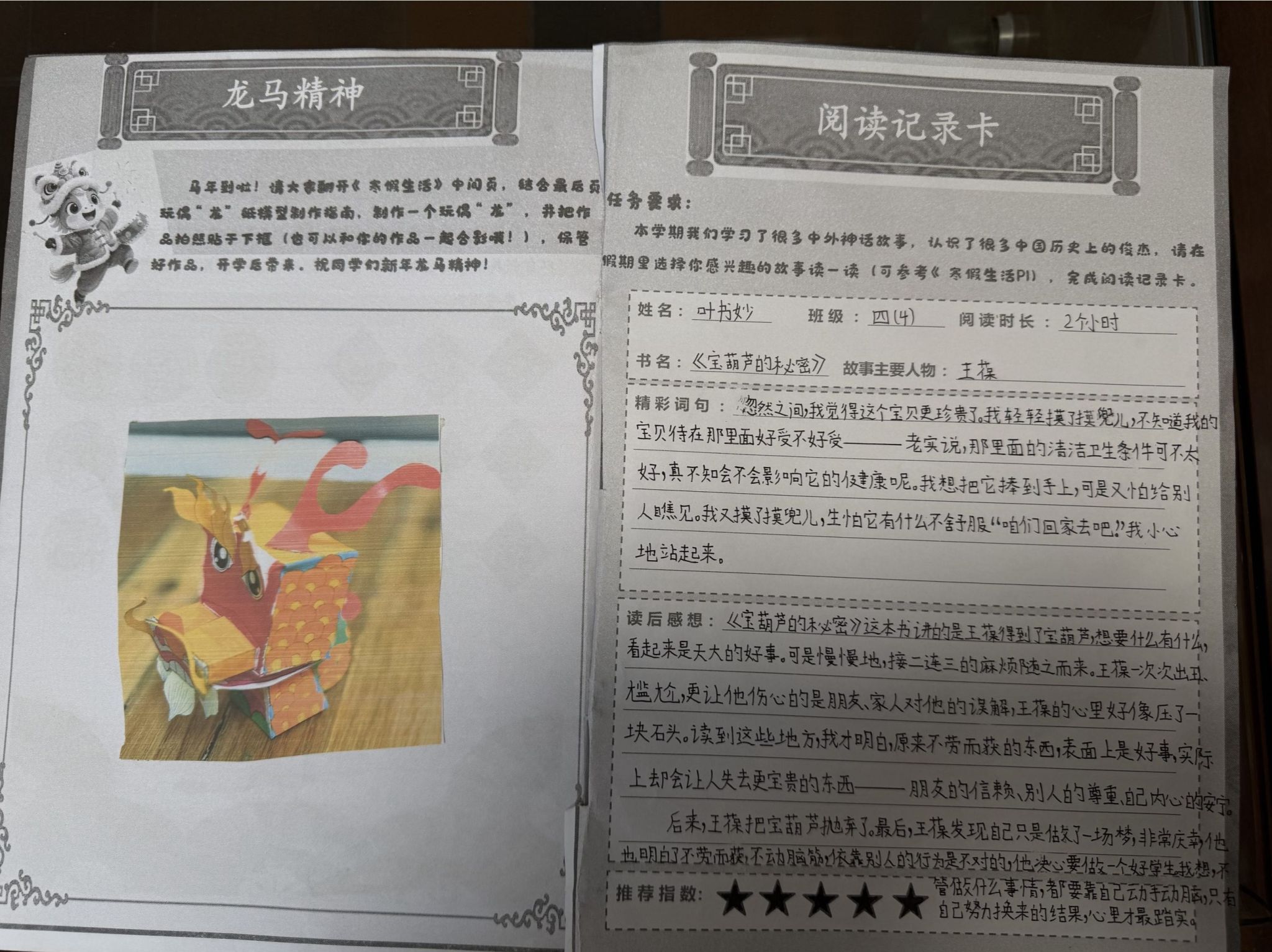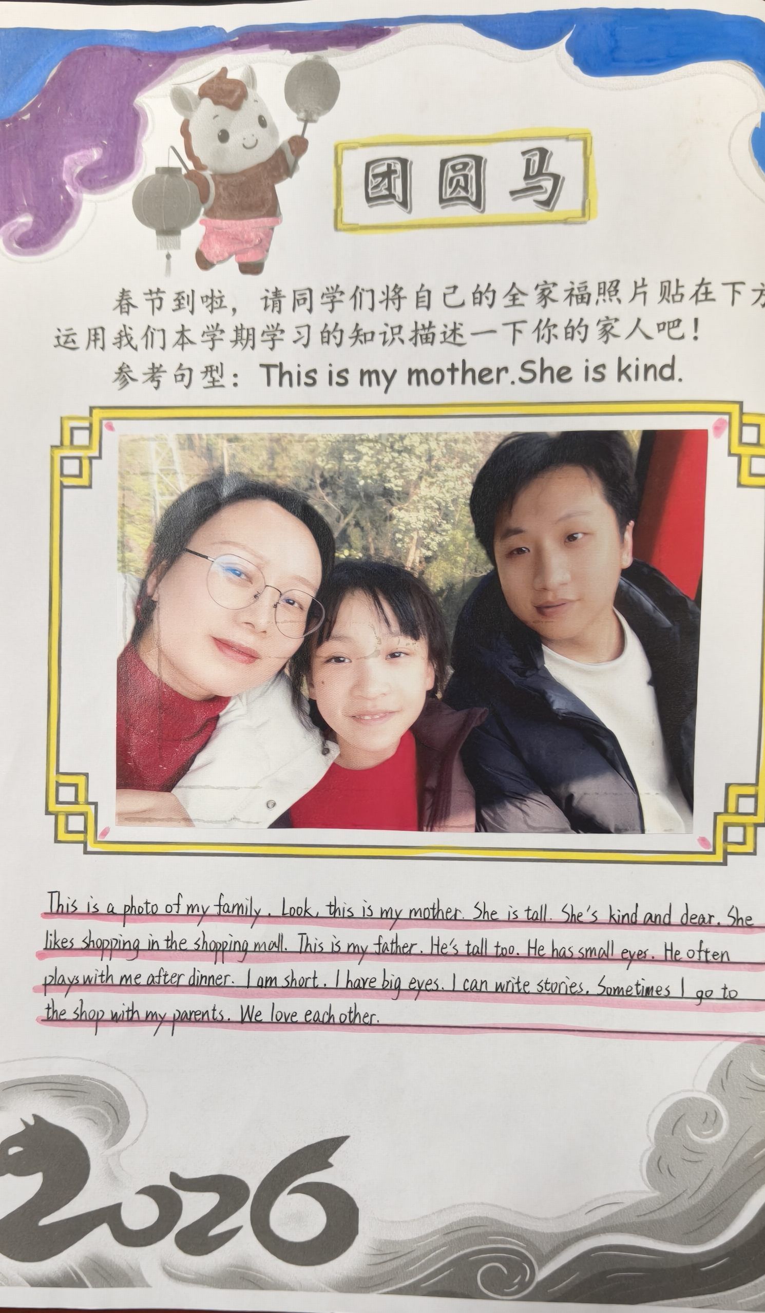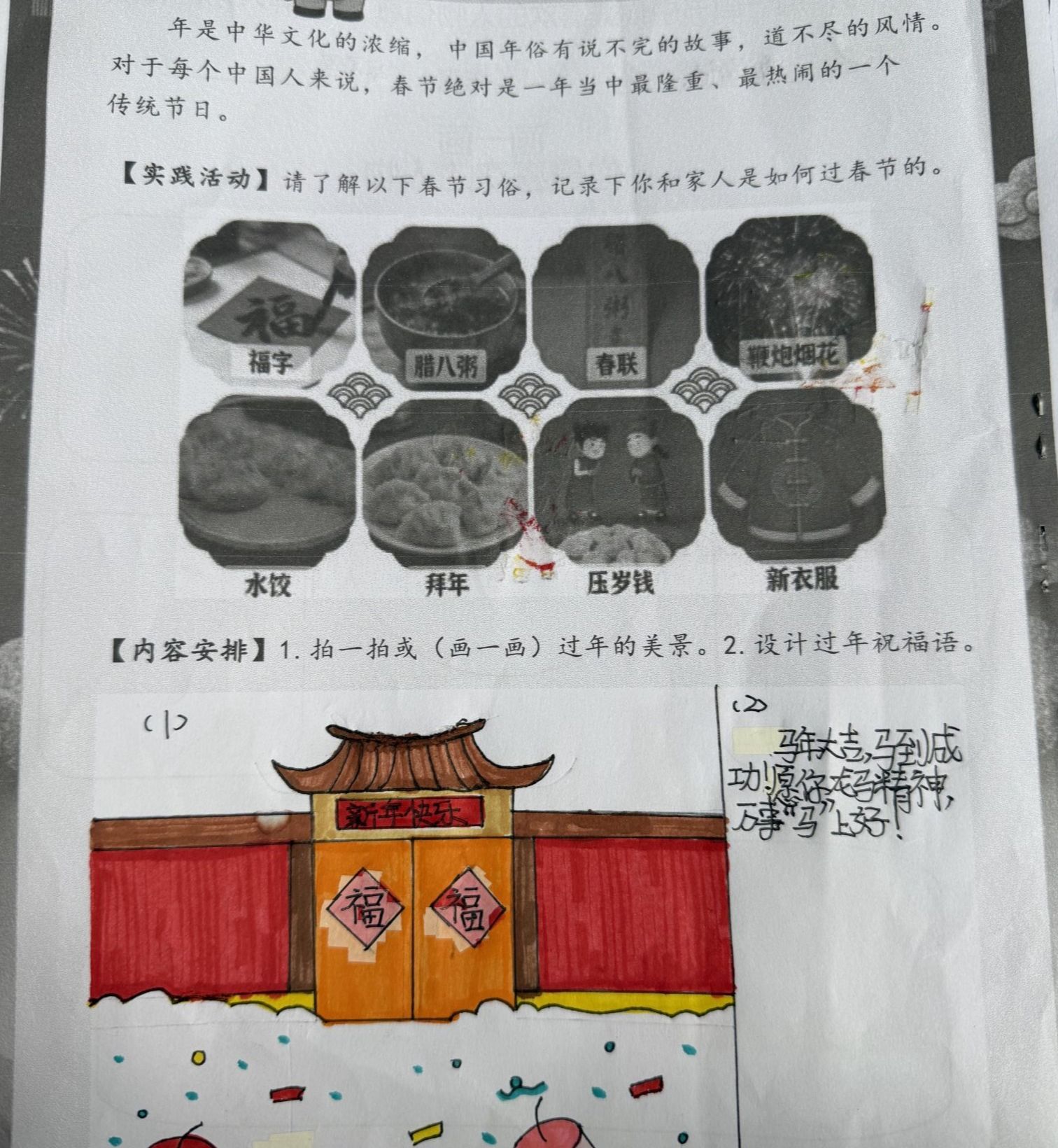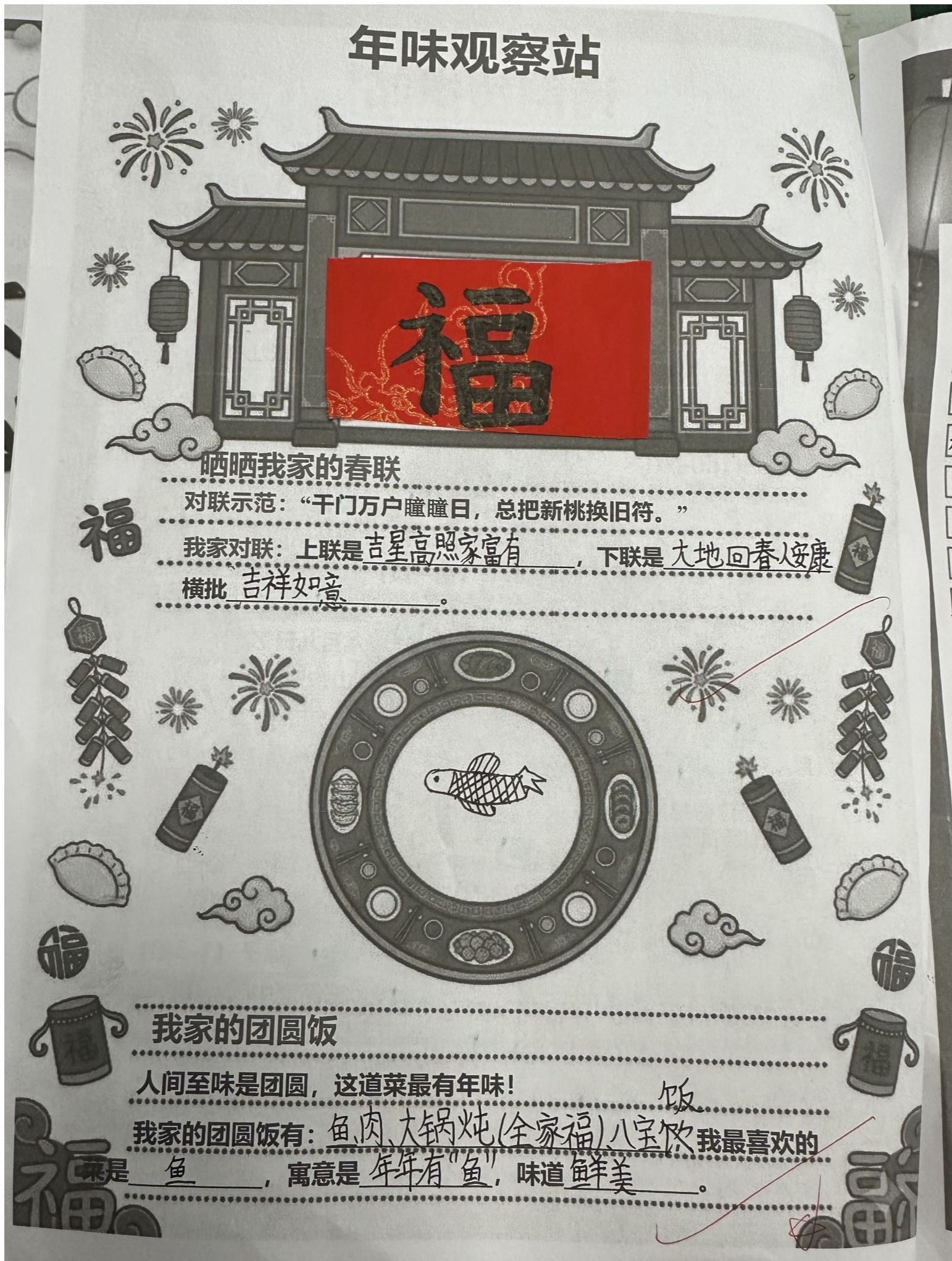 三科作业同源共流,以春节为共同纽带,打破了课本与生活的壁垒,让知识不再是纸上的文字,而是可触摸、可实践、可传承的生活体验。孩子们在动手实践中锤炼能力,在开口表达中传递文化,在用心体悟中涵养情怀。