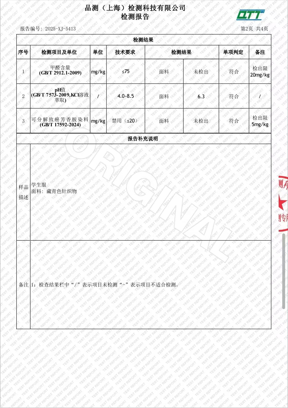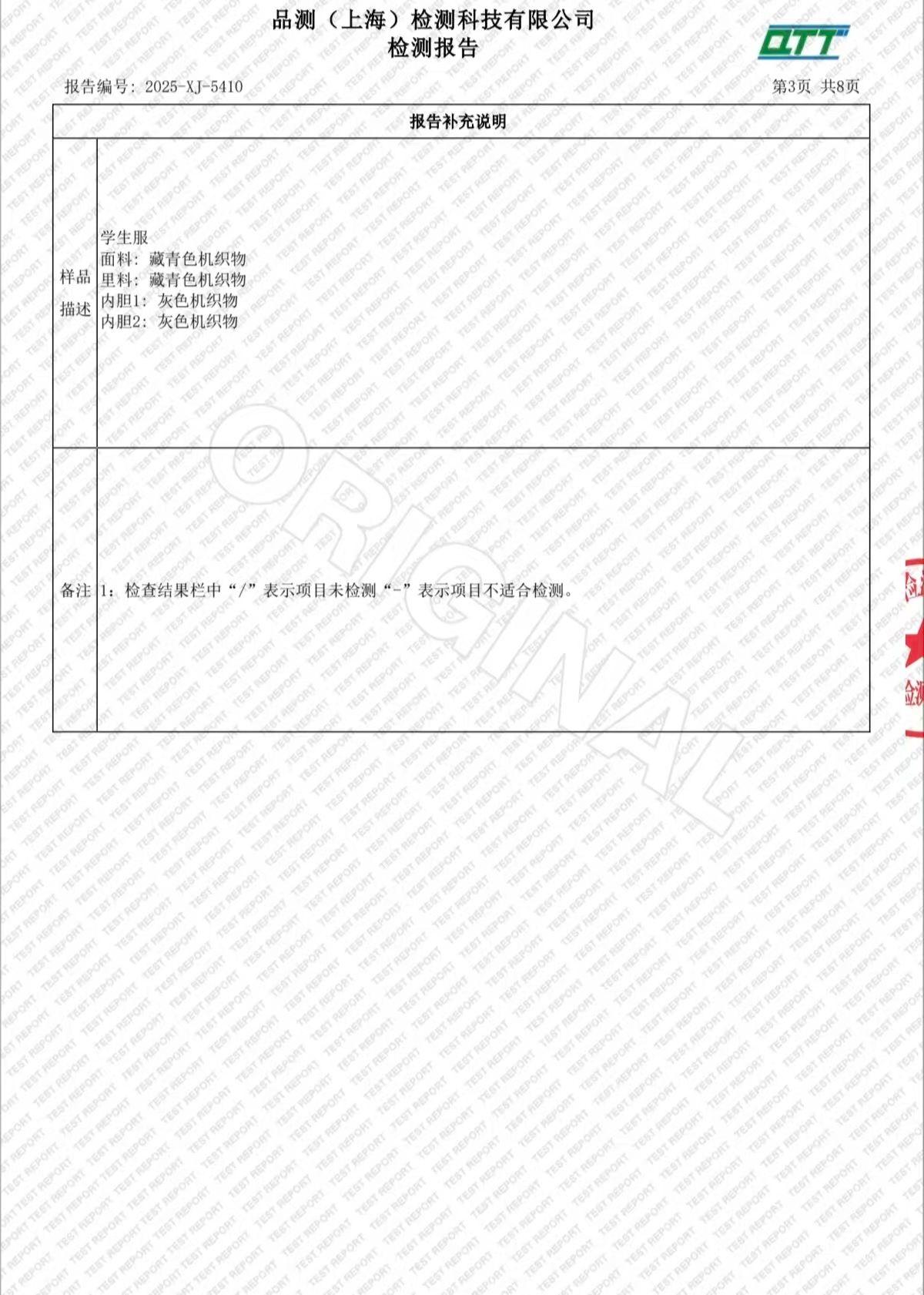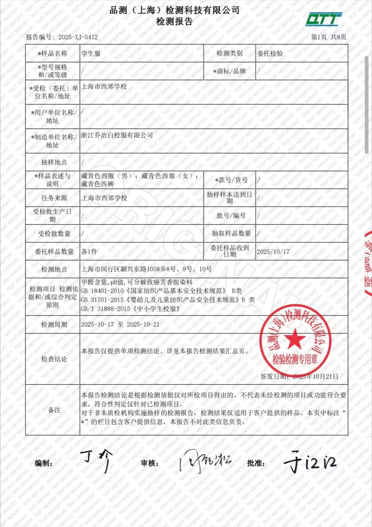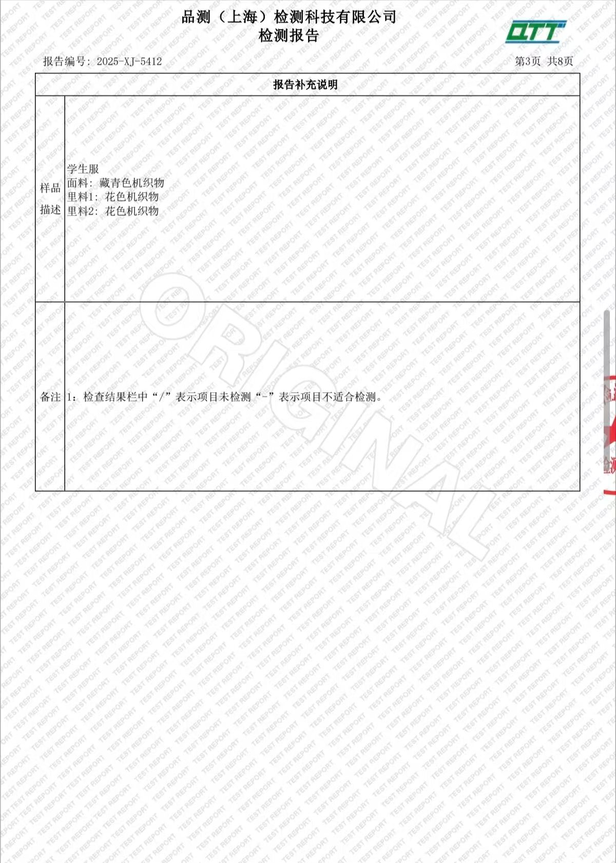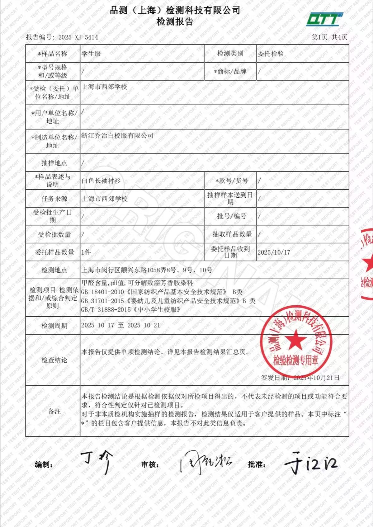 2025学年上海市西郊学校春夏校服检测报告公示